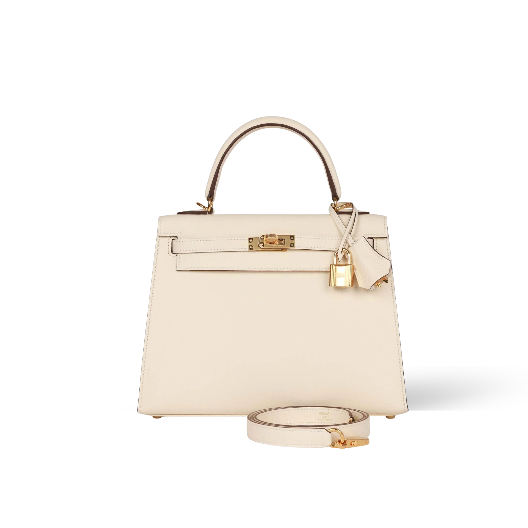 Hermes Kelly 25 Bag In Ivory Beige Epsom Leather For Women 25cm/10in