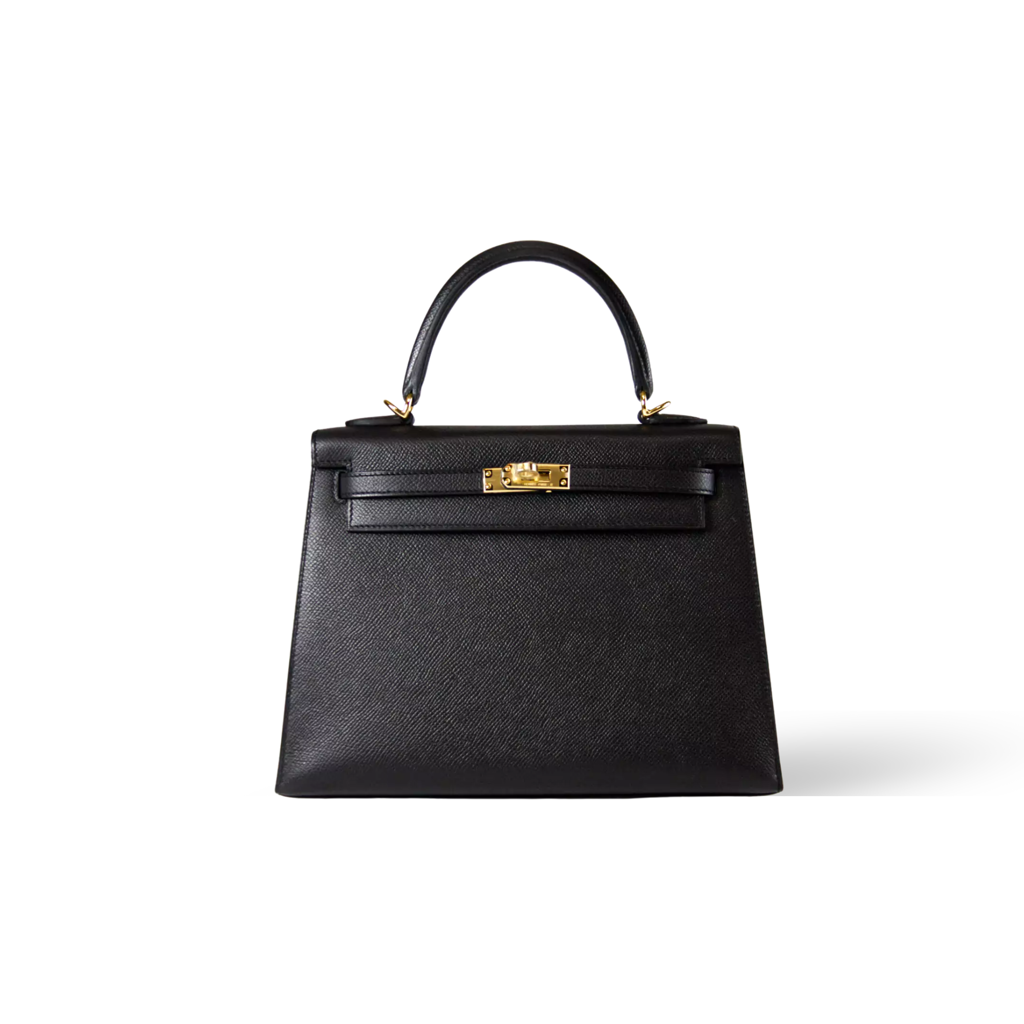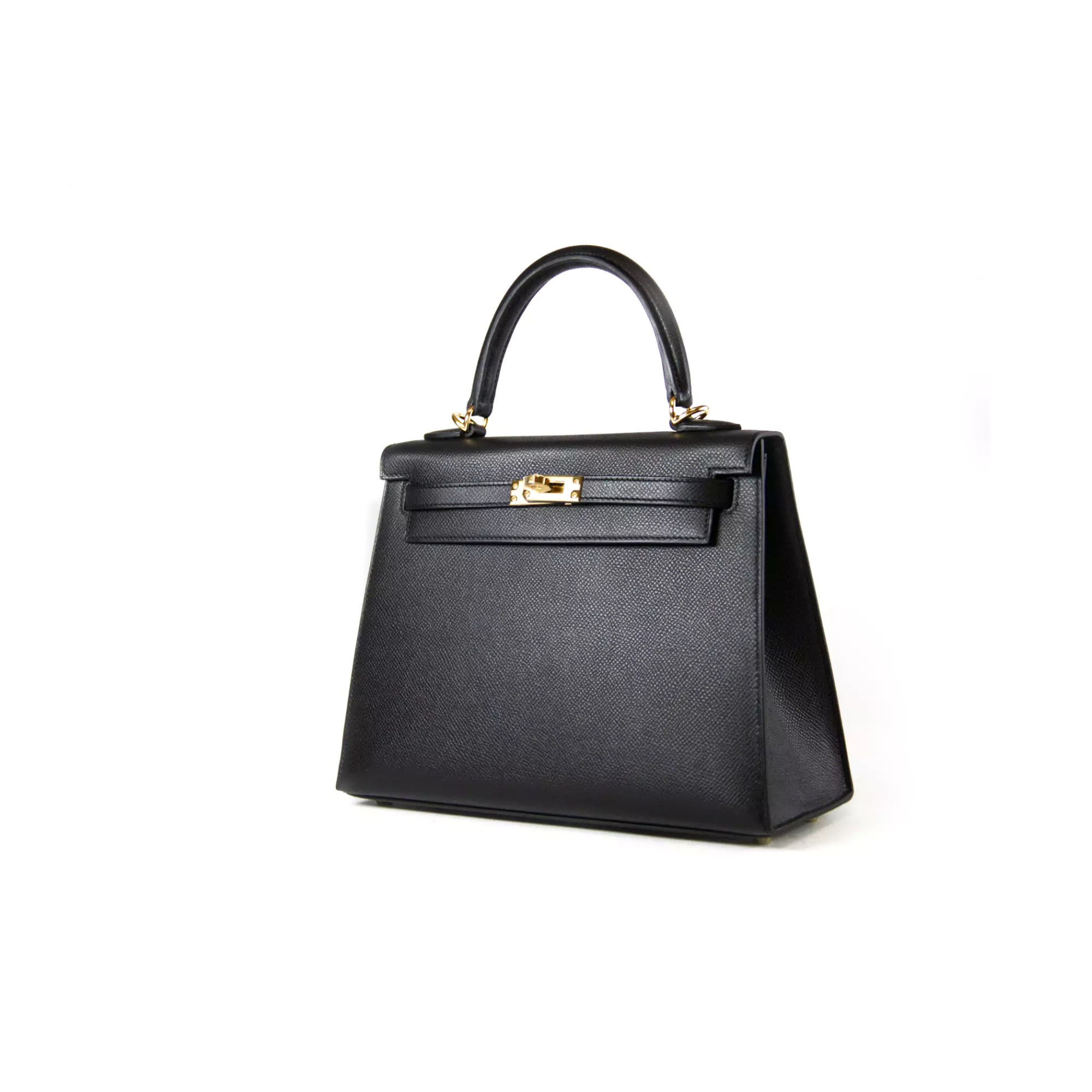 Hermes Kelly 25 Bag In Golden Black Epsom Leather For Women 25cm/10in