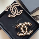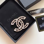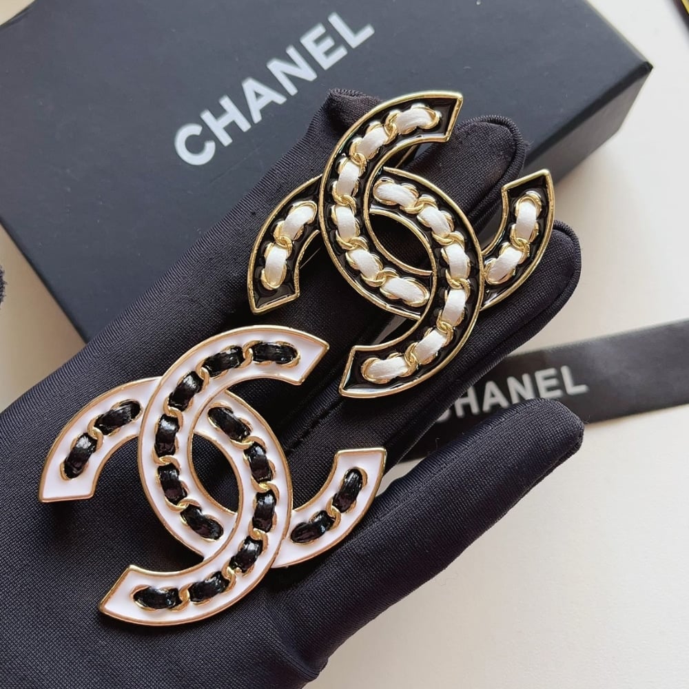 • Chanel Cc Brooch White With Black Interwoven Chain Pattern