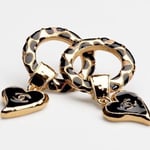 Chanel Classic Love Double C Logo Leopard Round Earrings