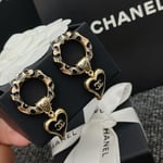 • Chanel Classic Love Double C Logo Leopard Round Earrings