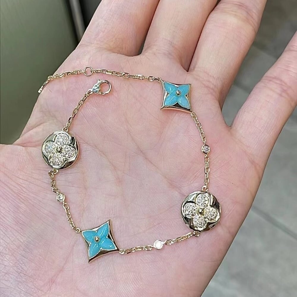 • Louis Vuitton Color Blossom Bb Bracelet Gold Tone With Blue Q05979