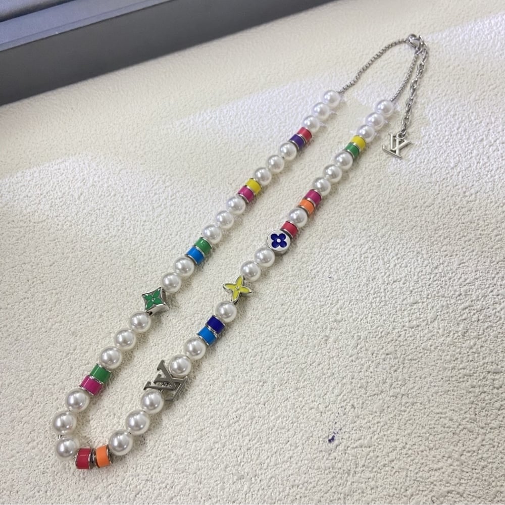 Louis Vuitton Mng Pearls Party Necklace Multicolor With Silver Metal M01500