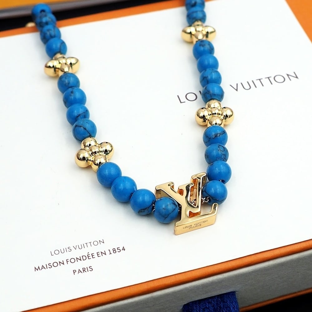 Louis Vuitton Turquoise Pearl Necklace Blue