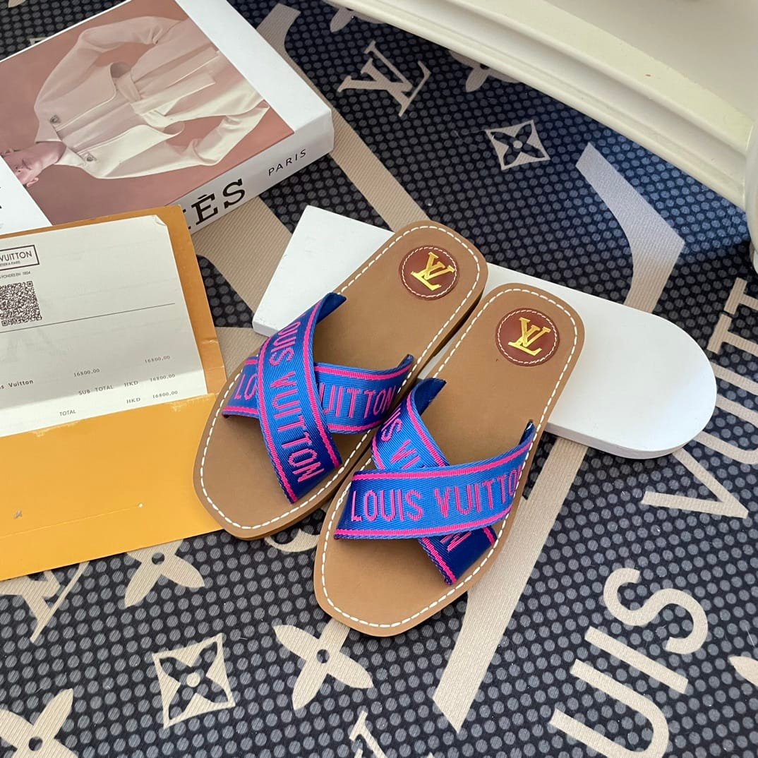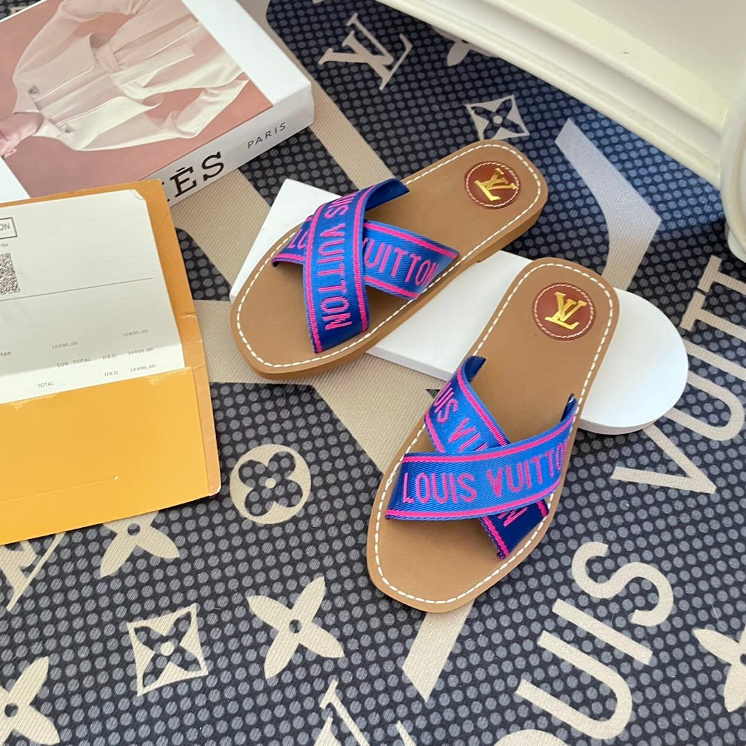 Louis Vuitton Cross Strap Flat Slides Blue