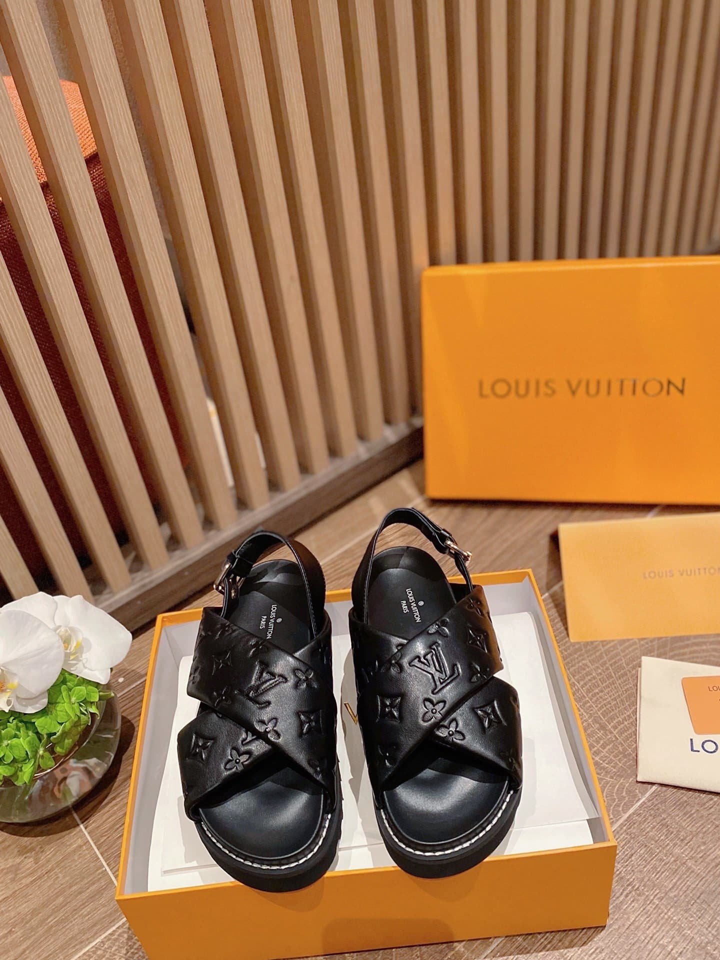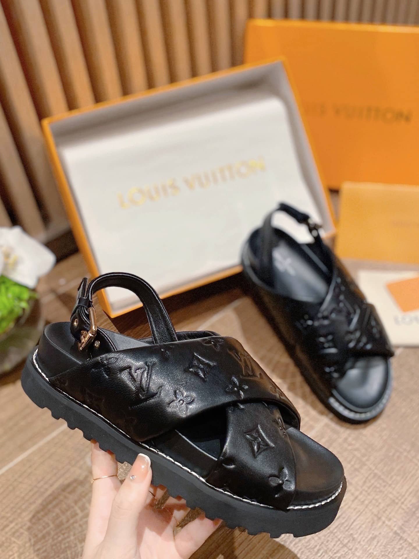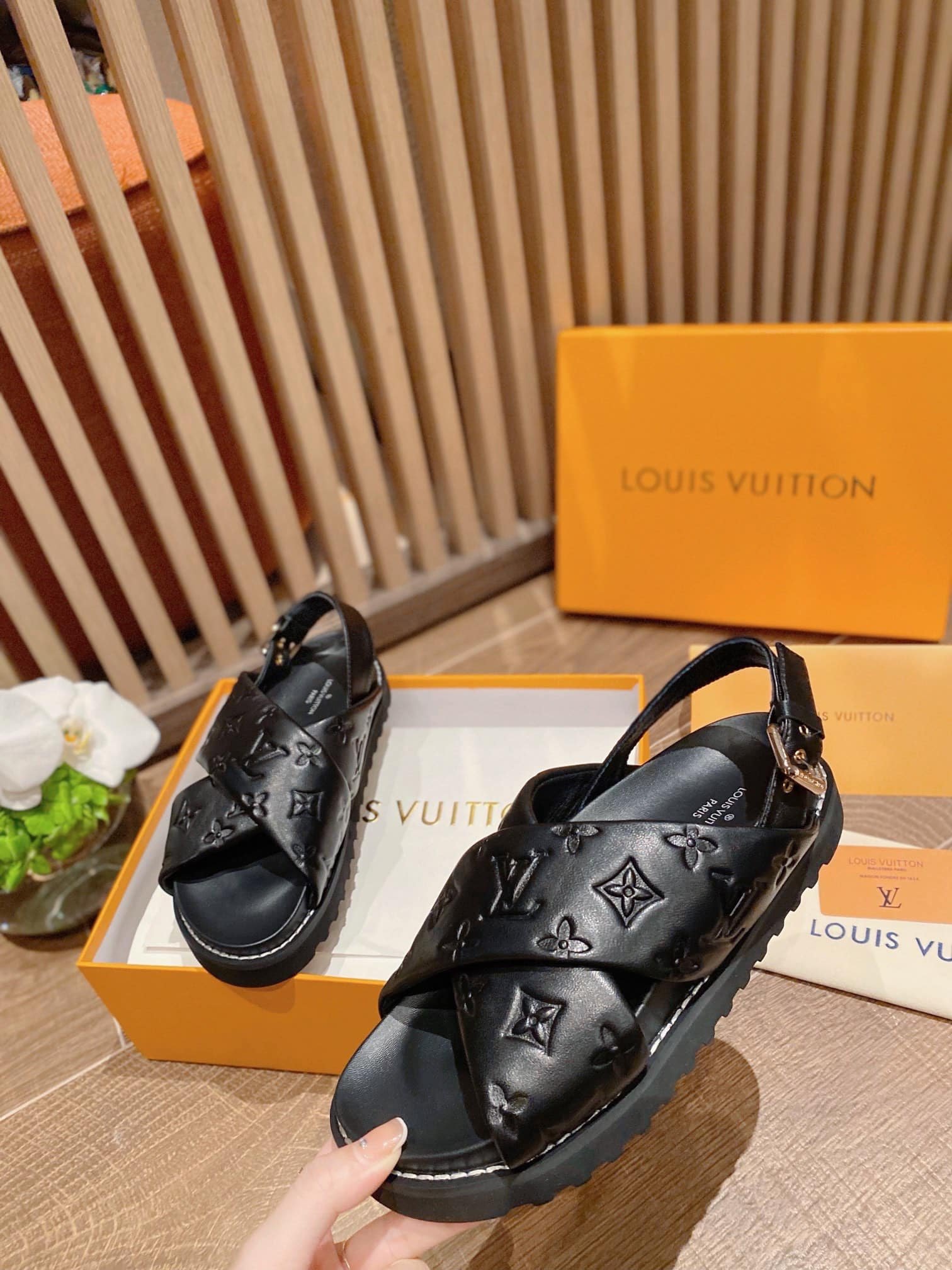 Louis Vuitton Monogram Embossed Paseo Flat Comfort Sandals Black