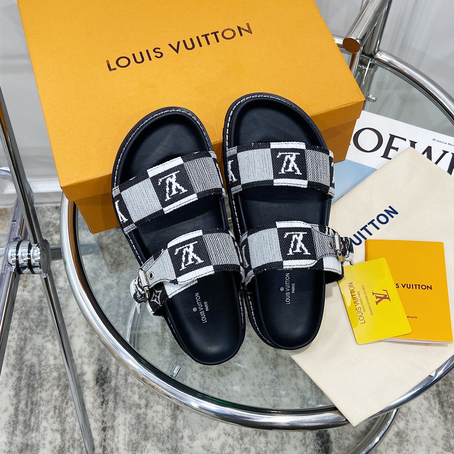 Louis Vuitton Chess Flat Loafer Black Monogram Embroidered with Gold Padlock 1AGXRV