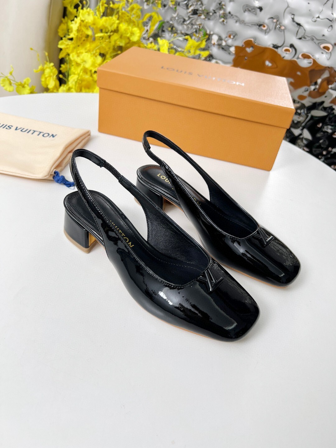 Louis Vuitton Madeleine Slingback Black Patent Leather Pumps 3.5cm