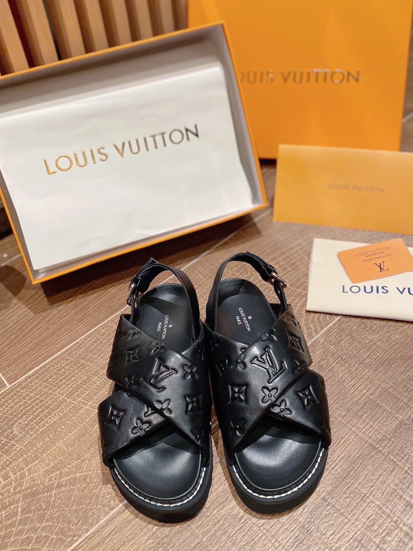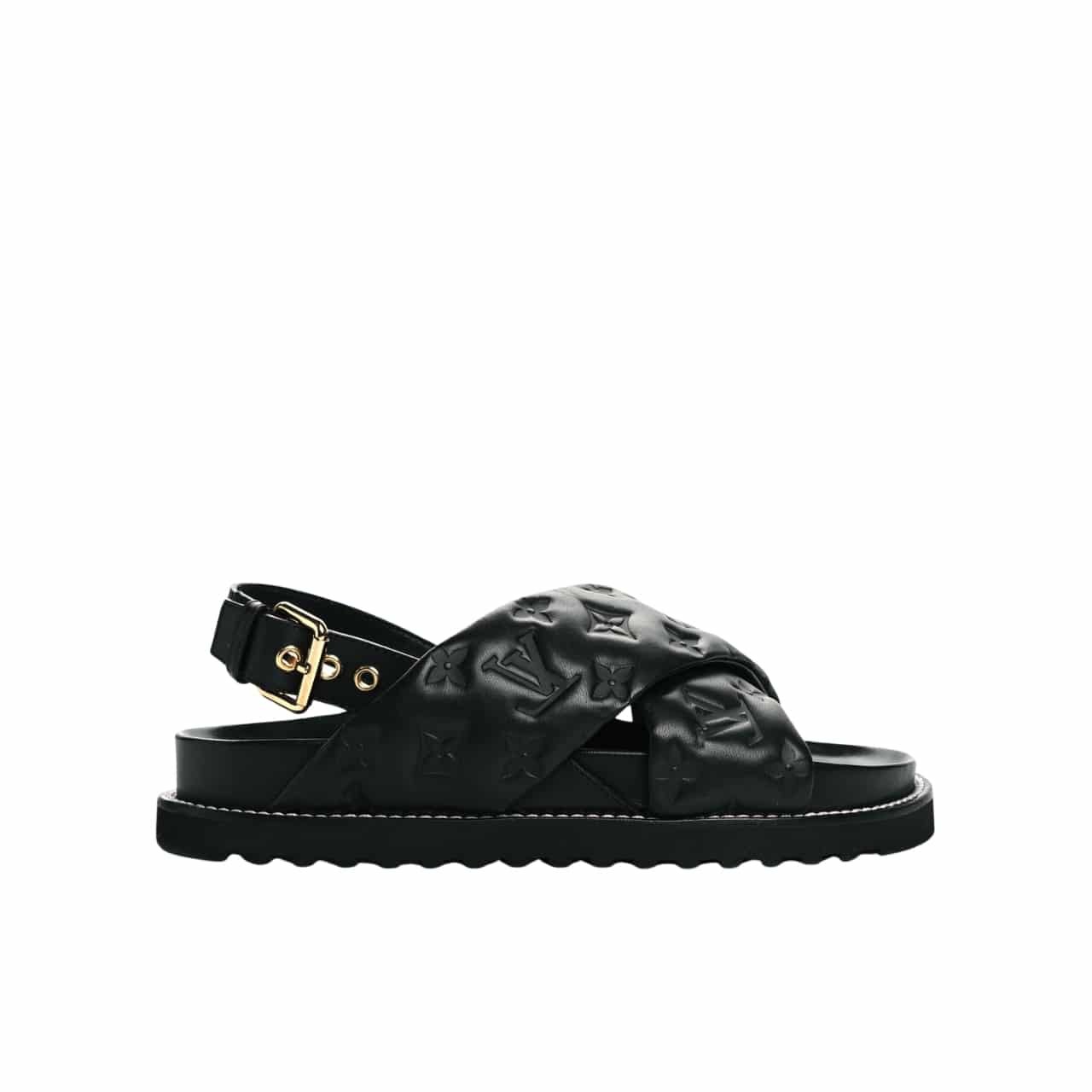 Louis Vuitton Monogram Embossed Paseo Flat Comfort Sandals Black