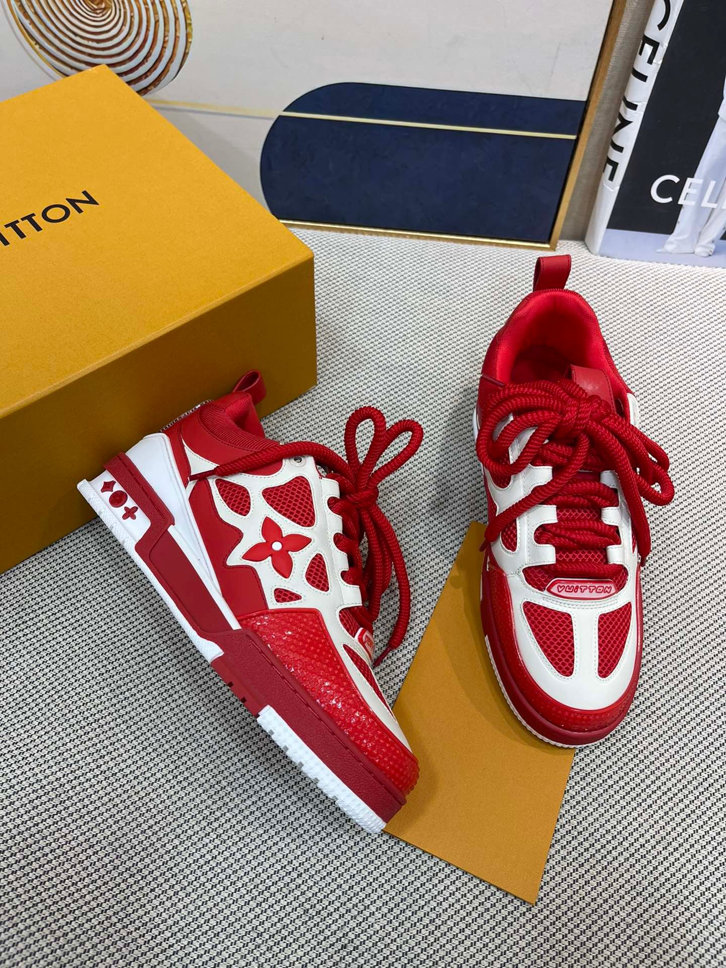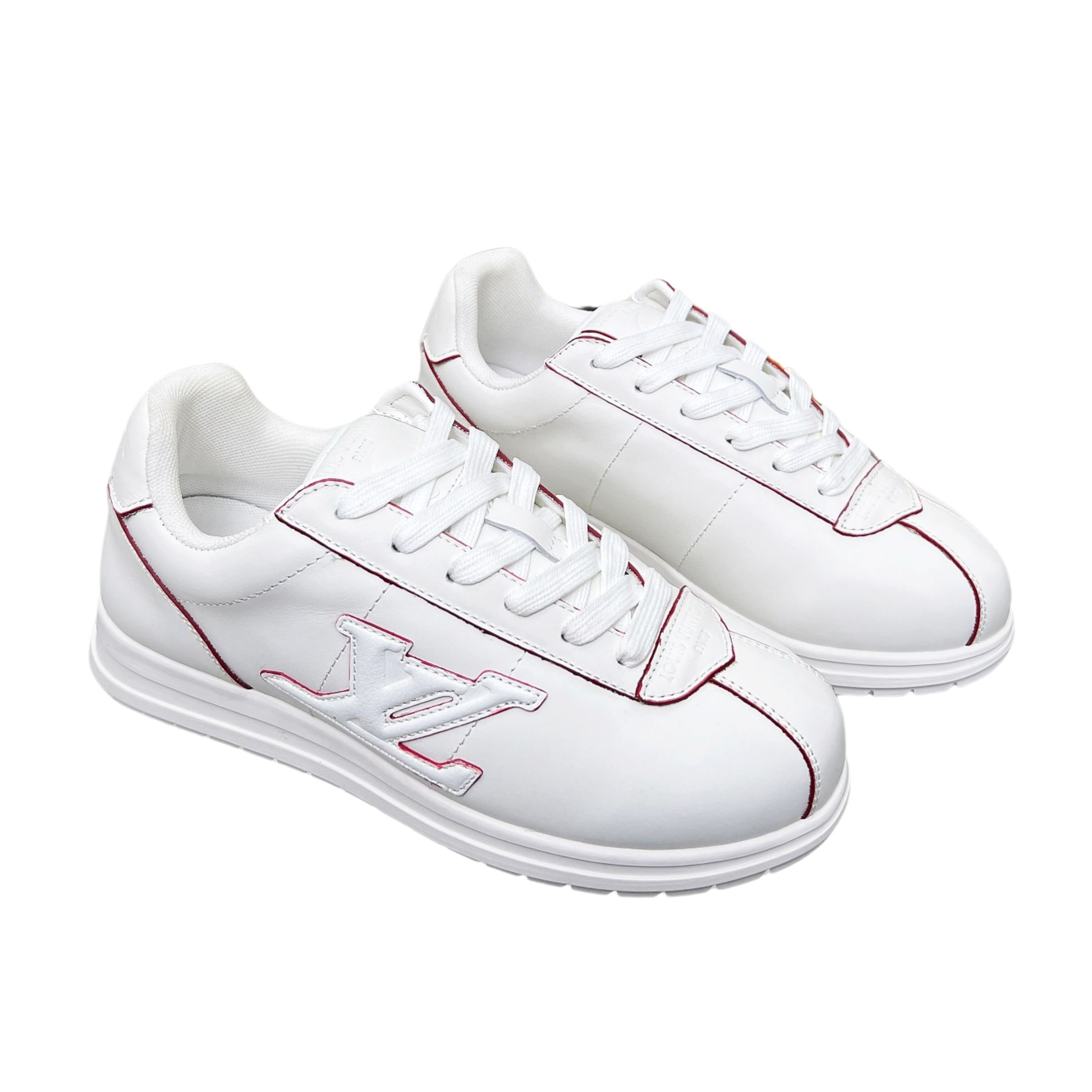 Louis Vuitton LV White Sneakers with Red Stitching �C Women’s Shoes