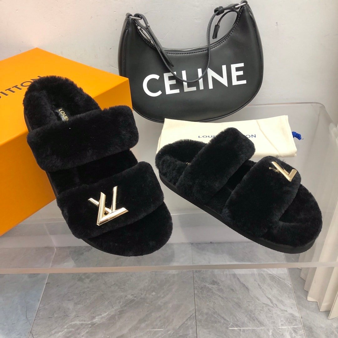 Louis Vuitton Lv Sunset Flat Comfort Mule Shearling Noir1 1Adc65