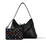 The elegant CarryAll Vibe handbag is crafted from supple lambskin in a practical body-friendly shape with tone-on-tone cowhide trimmings and a roomy interior big enough to fit daily essentials, including a large smartphone. As part of the celebratory re-edition of the Louis Vuitton x Murakami collection, a multicolored Monogram motif adds a joyful pop of color to the removable strap and emblematic name tag. Complete with a removable inside pouch.
