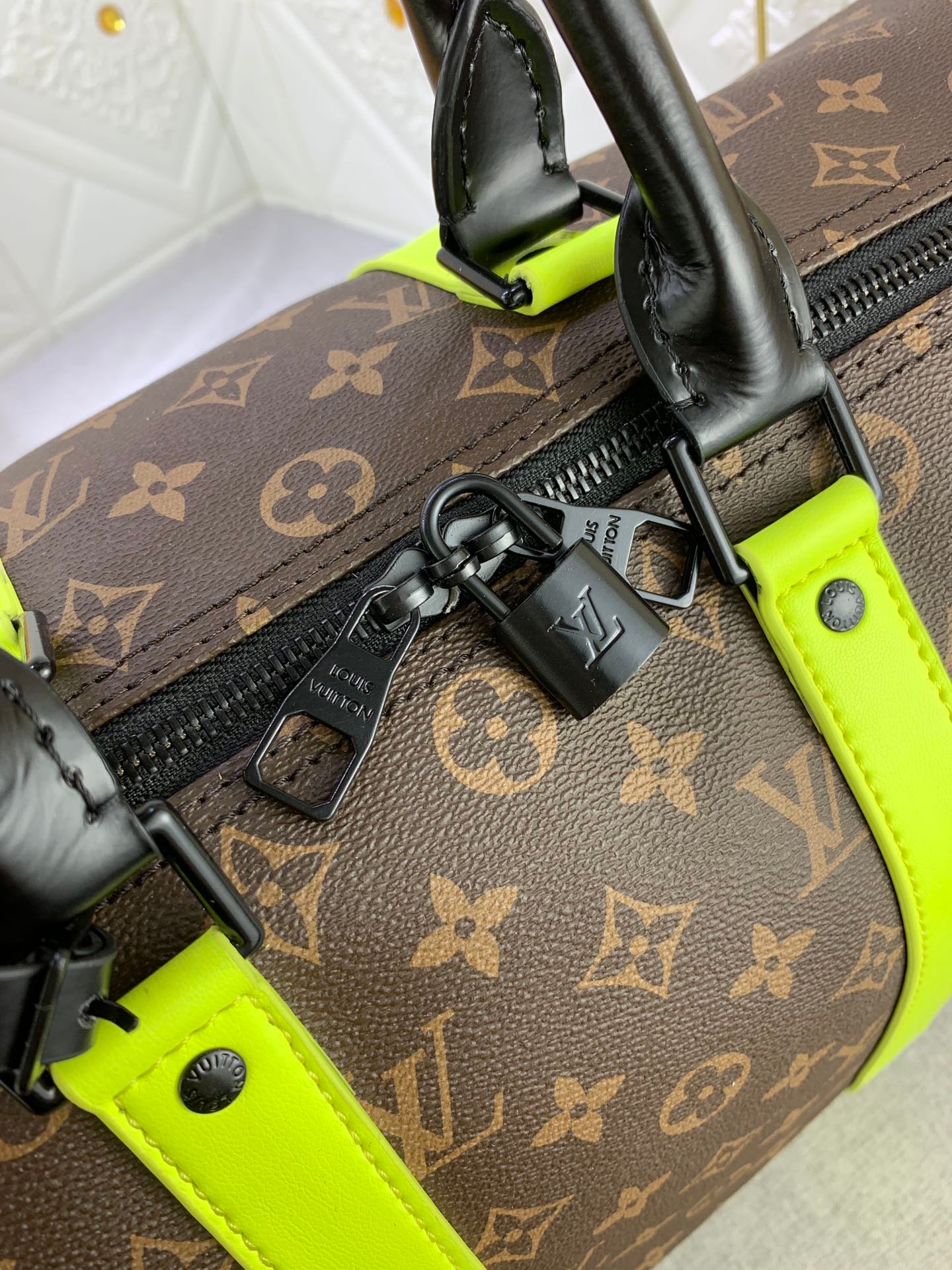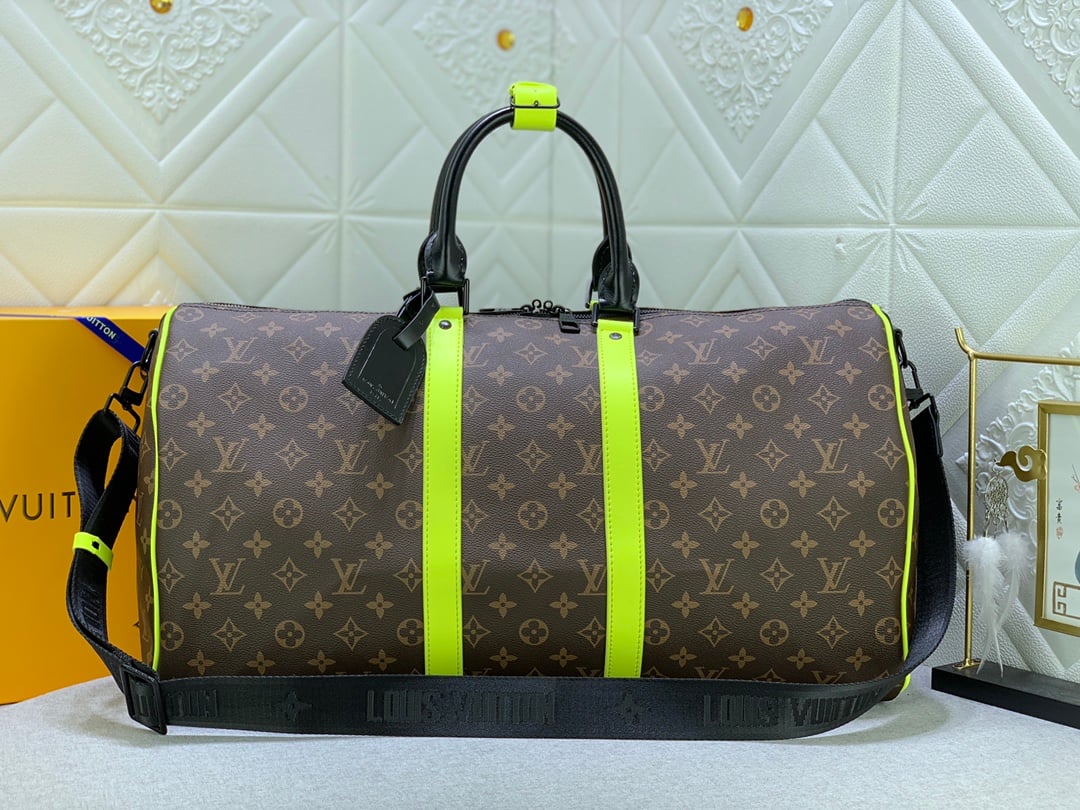 • Louis Vuitton Keepall Bandouli Re 50 Brown And Chartreuse Macassar Canvas M45866