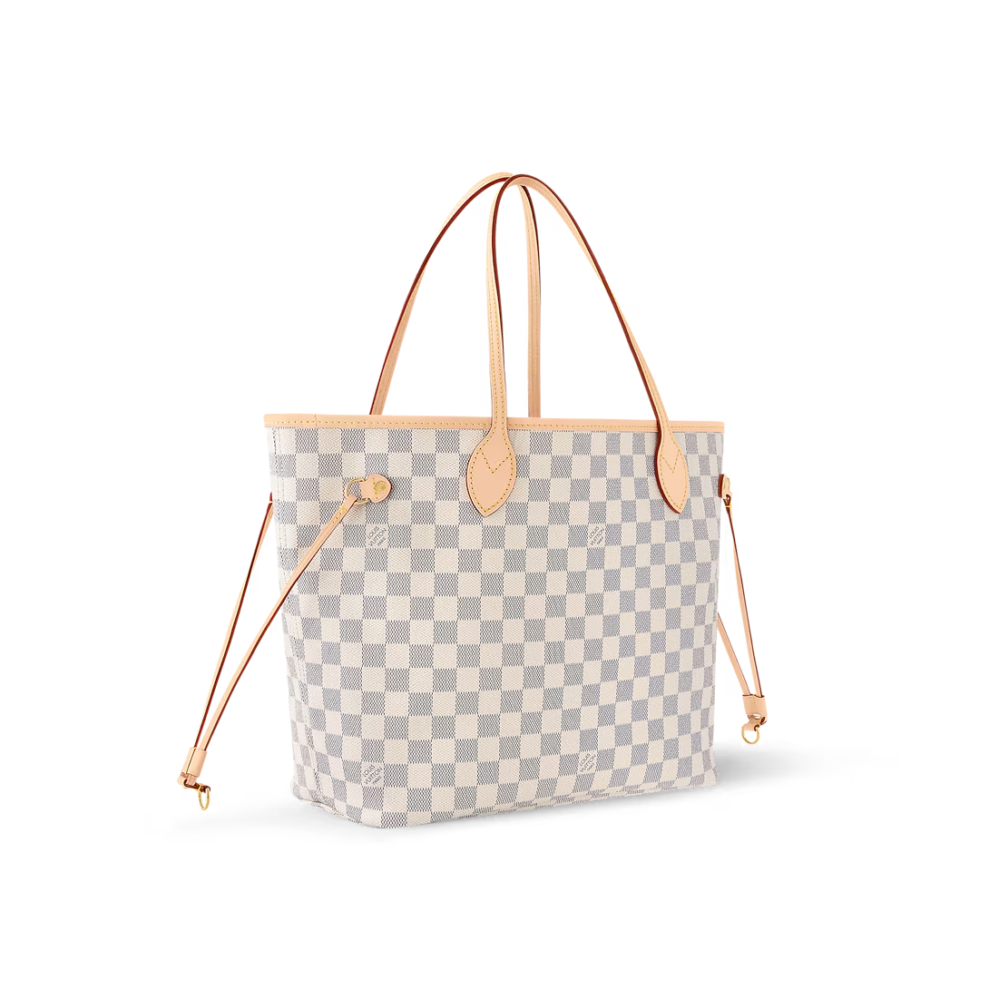 • Louis Vuitton Neverfull MM Tote Bag Damier Azur Canvas Rose Ballerine 31cm N40603