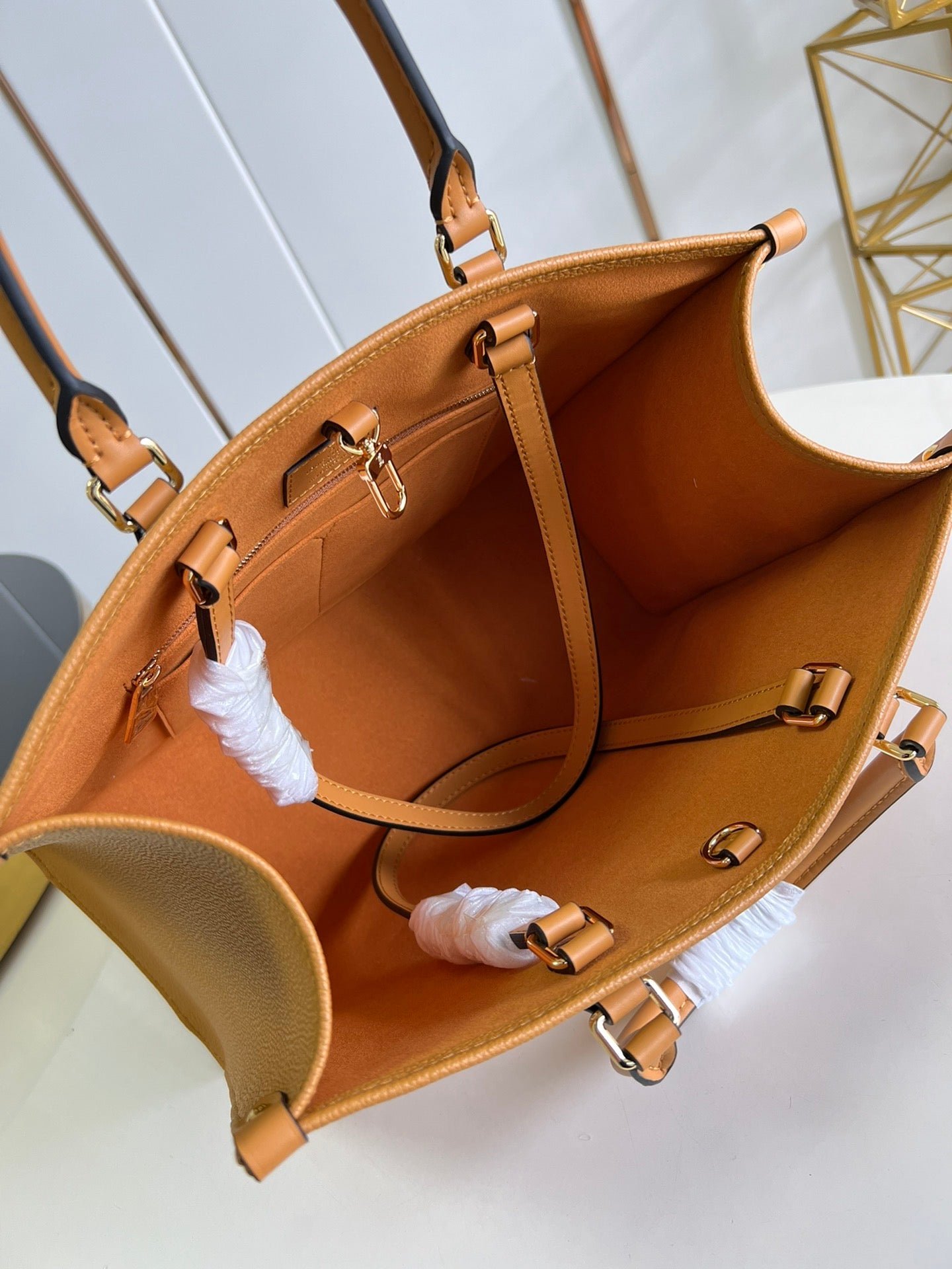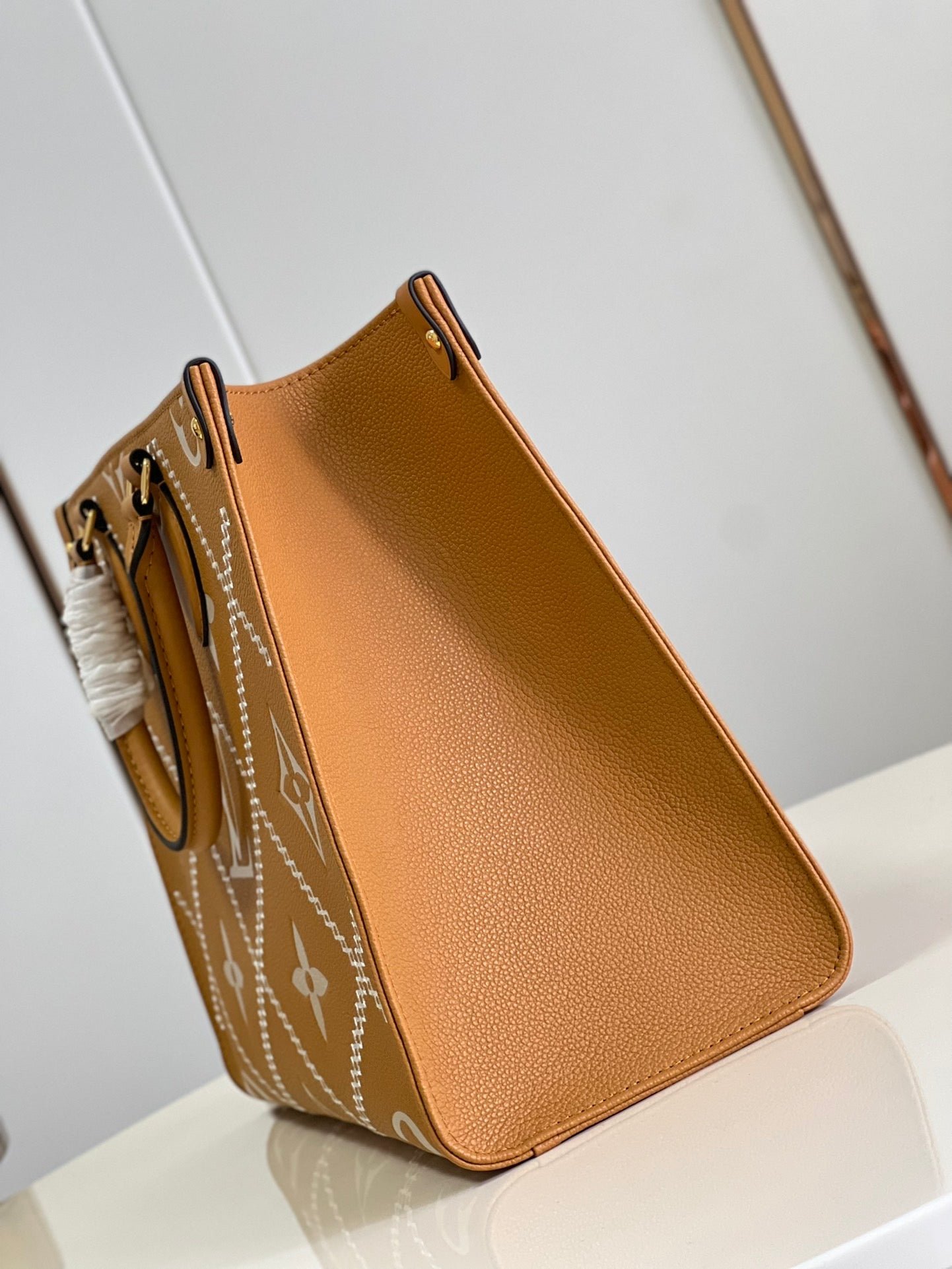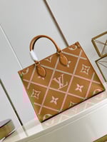 • Louis Vuitton Onthego MM Tote Monogram Arizona ��Brown Cr猫me Beige�?35cm