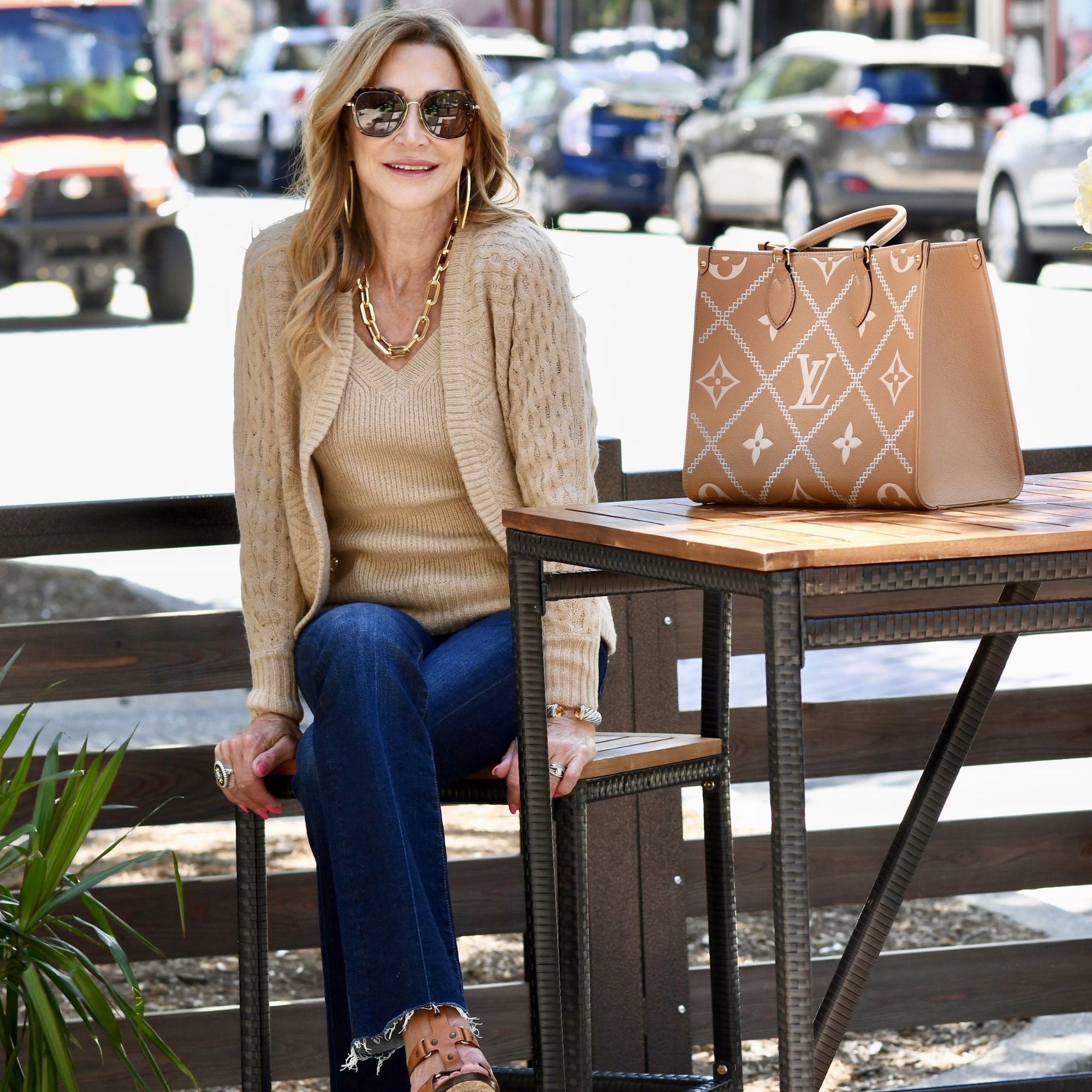 Louis Vuitton Onthego MM Tote Monogram Arizona ��Brown Cr猫me Beige�?35cm