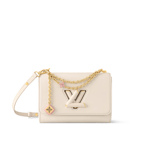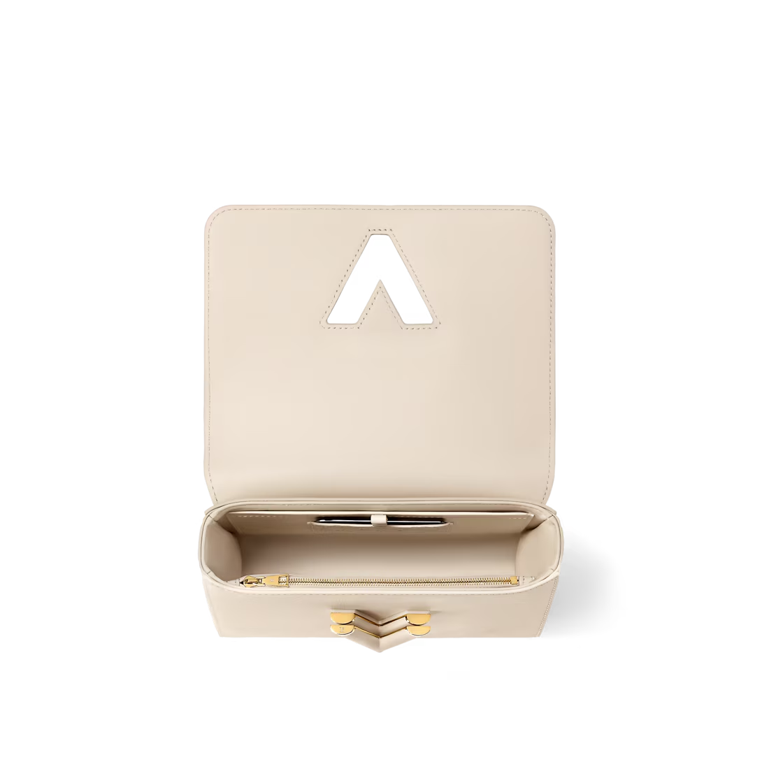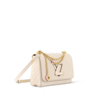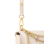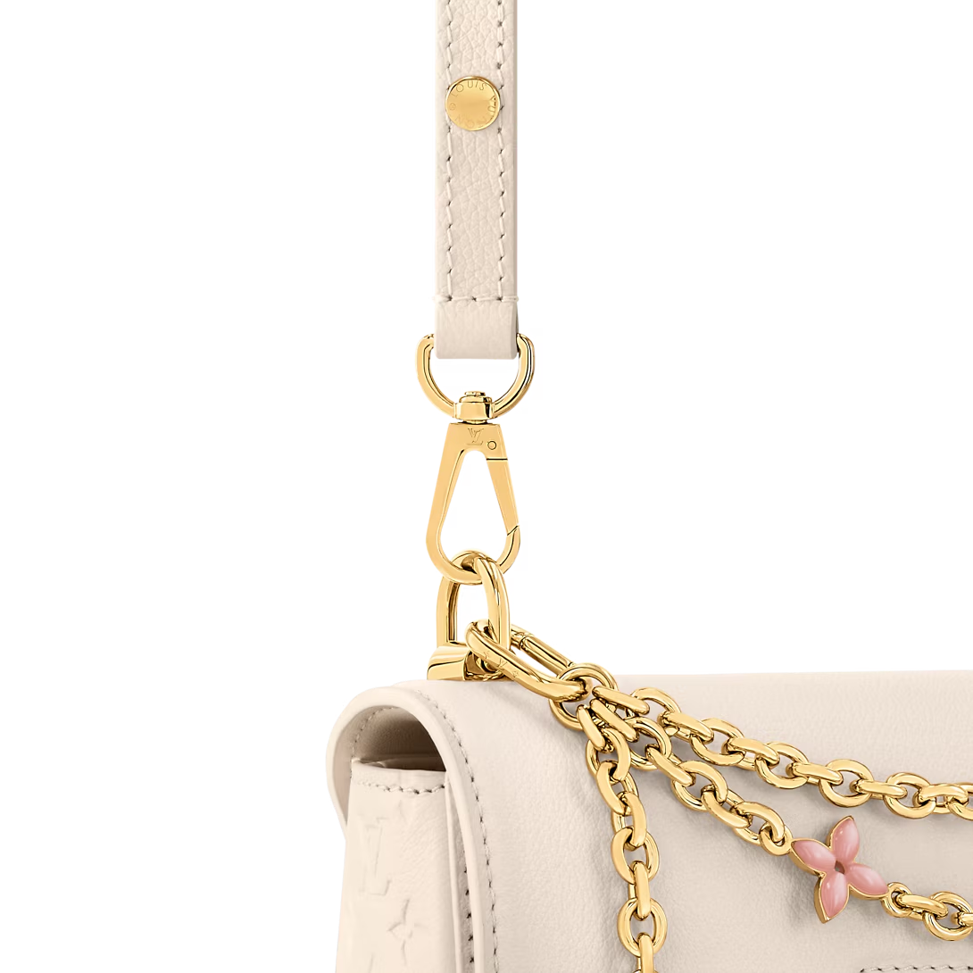 The Harmony collection reimagines the Twist MM Slim with a decorative chain, inspired by Monogram Flowers and the Puffygram jewelry line. Embellished with an LV Twist lock, this edition is crafted from Taurillon leather in a timeless colorway, elevated with a hint of pink for a playful finish. Use the removable mirror for makeup touch-ups.