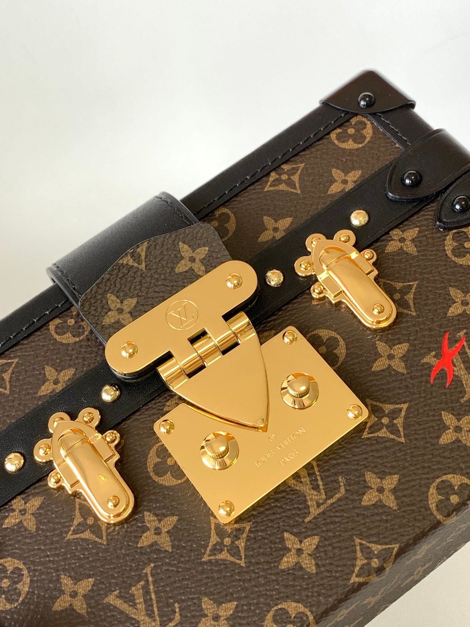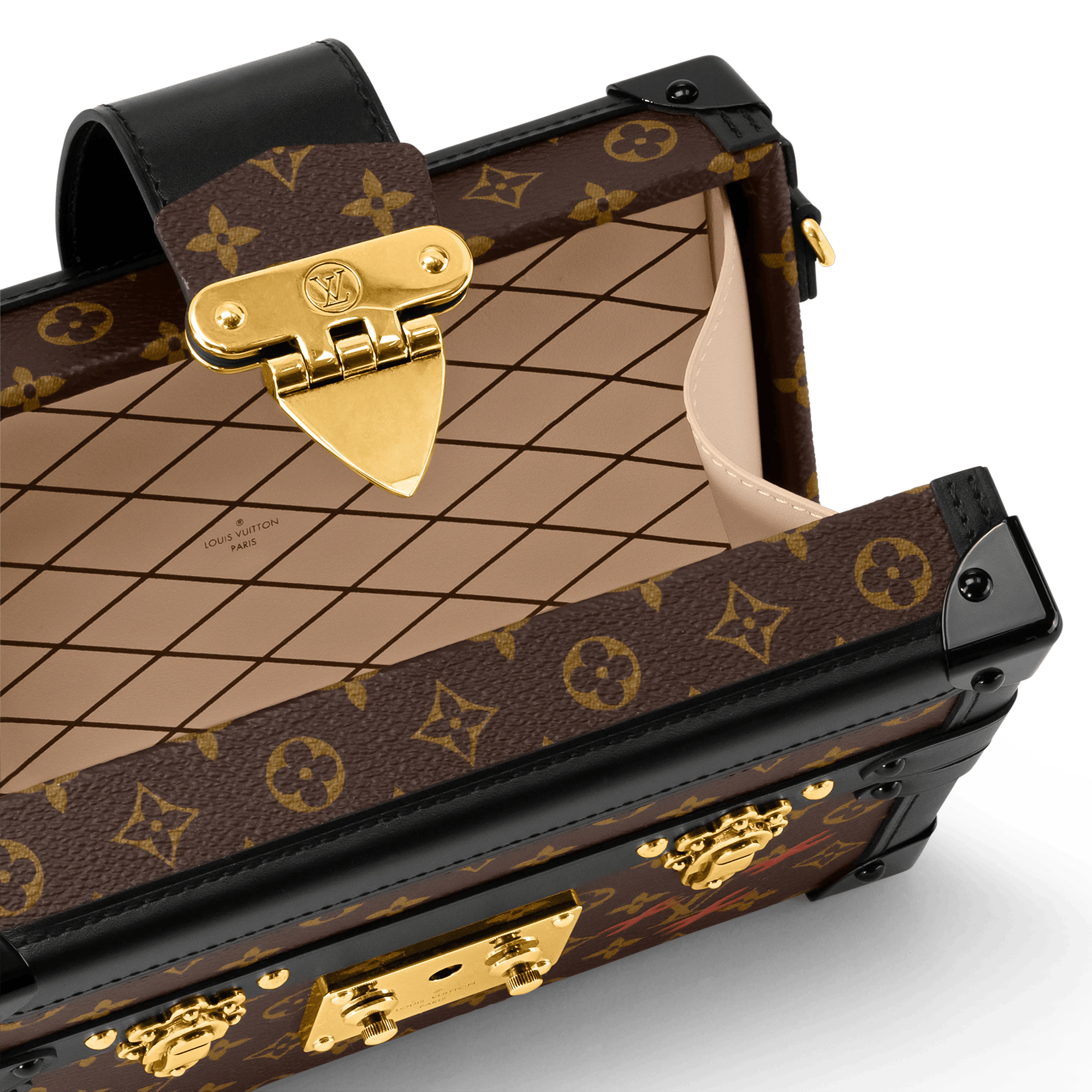 Every detail of the Petite Malle handbag is inspired by the history of Louis Vuitton trunks: the shape, the iconic Monogram canvas, the gold-tone lock and fittings �?even the sheepskin lining reprises a classic House motif. Impeccably crafted, with smooth calfskin trim, this covetable ��little trunk�?travels easily from day to evening. It can be carried as a clutch or attached to the adjustable strap for cross-body wear.
