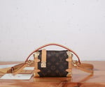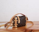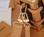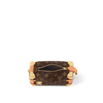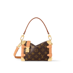 Evocative of the House’s historic trunks, the Side Trunk PM’s rectangular shape is fashioned from Monogram canvas with cowhide-leather trim and gold-color hardware. The reinforced corners and S-lock attached to the zipper are directly inspired by Louis Vuitton trunks. It can be carried by hand or on the shoulder thanks to the removable and adjustable leather strap.