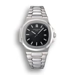 Introducing our exquisite replica of the Nautilus 3711/1B Patek Philippe, designed for those who appreciate the timeless elegance and precision of luxury watches without the steep price tag. Crafted from the finest stainless steel, this 39 mm marvel mirrors the sophistication of its original counterpart, boasting a sleek black dial that captivates at first glance.