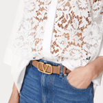 Valentino Garavani VLogo Signature reversible belt in glossy Calfskin leather.