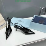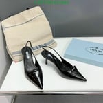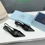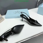 Prada Brushed Leather Slingback Pumps Black 1I901M055F0002F075