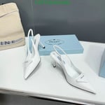 Prada Brushed Leather Slingback Pumps White 1I901M055F0009F075