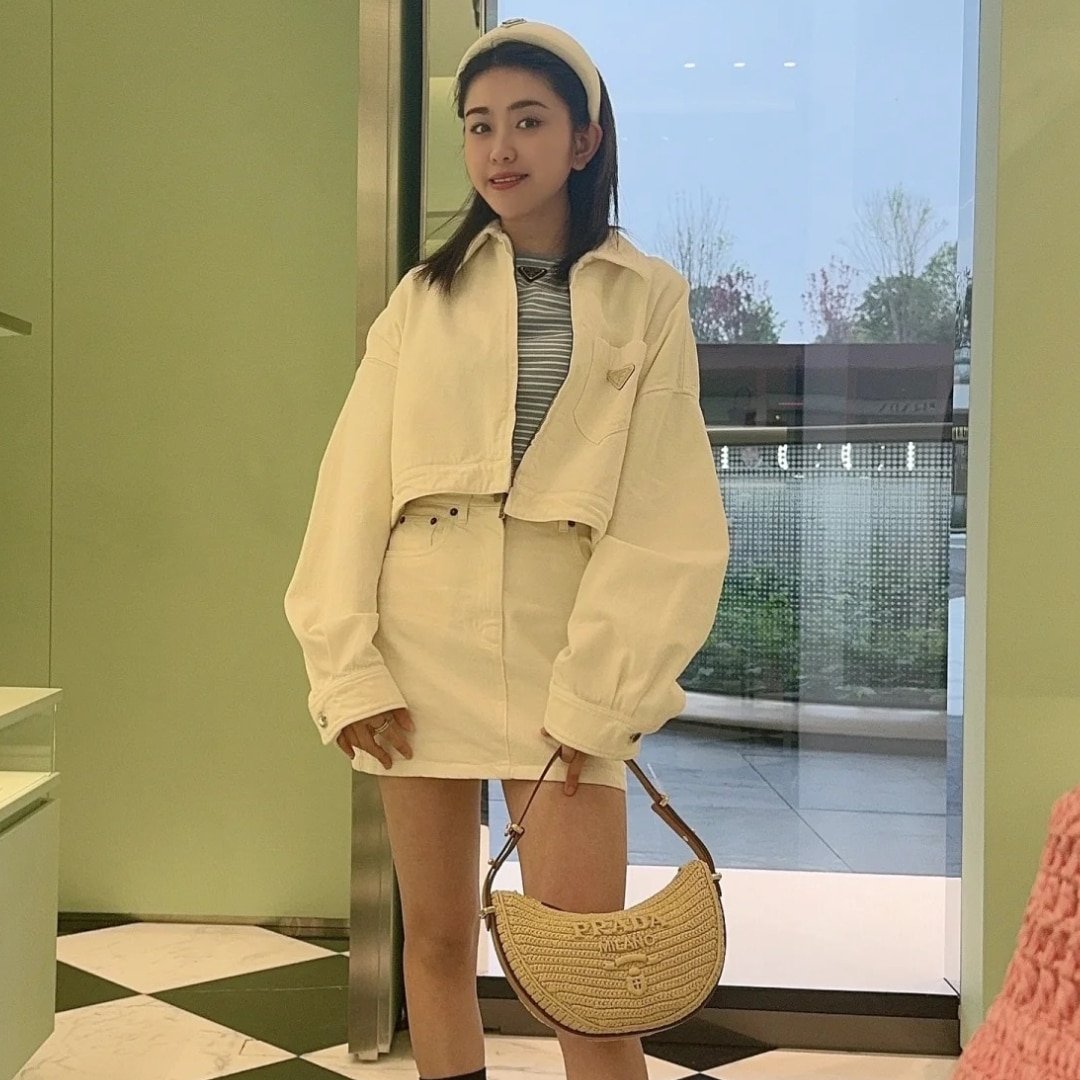• Prada Arqué Crochet Shoulder Bag Natural 22Cm