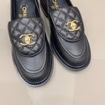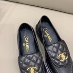 • Chanel Quilted Leather Loafers Black with Gold CC Logo