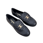 Chanel Quilted Leather Loafers Black with Gold CC Logo