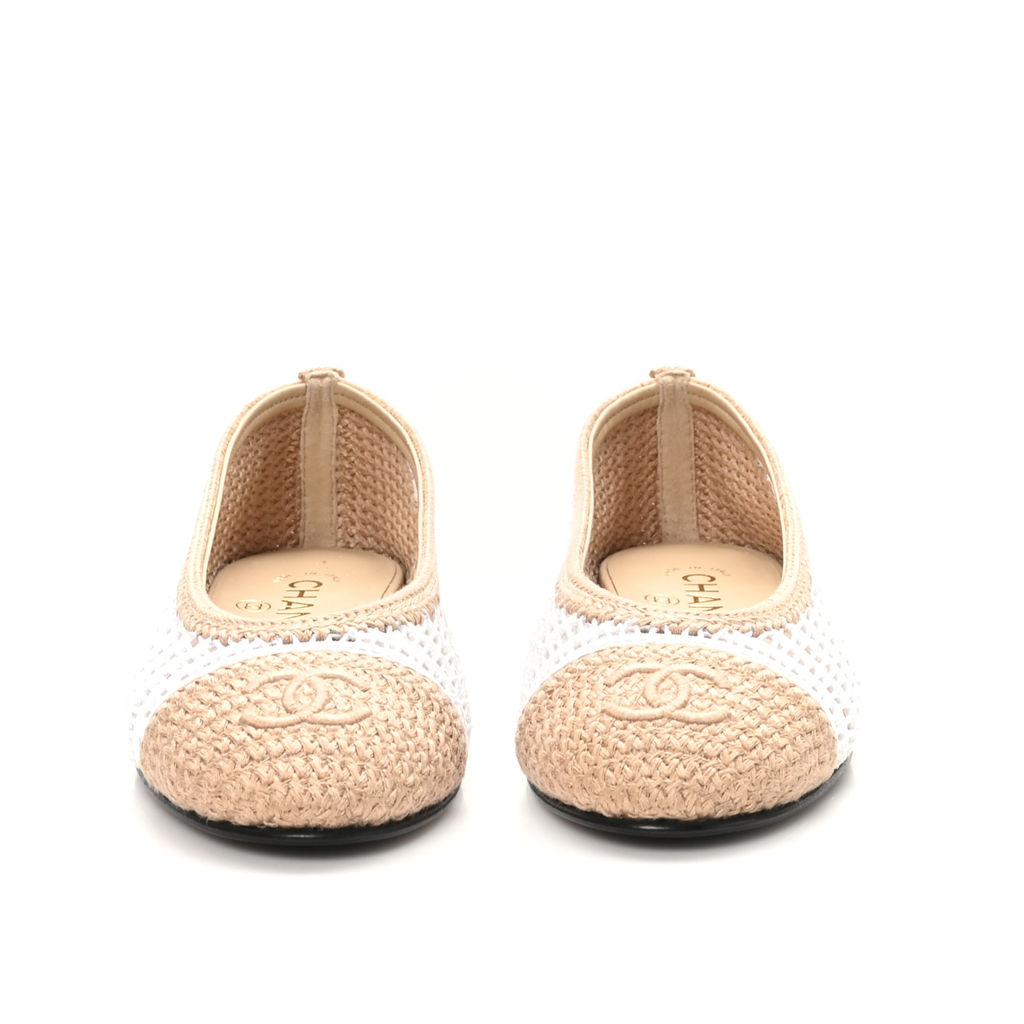 • Chanel Raffia & Leather Two-Tone Beige/White Ballet Flats G45056