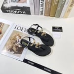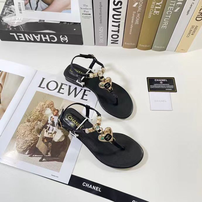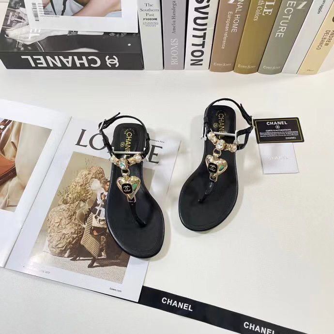 • Chanel Shiny Pearl Crystal Cc Heart Thong Sandals Black G39674 X01000 94305