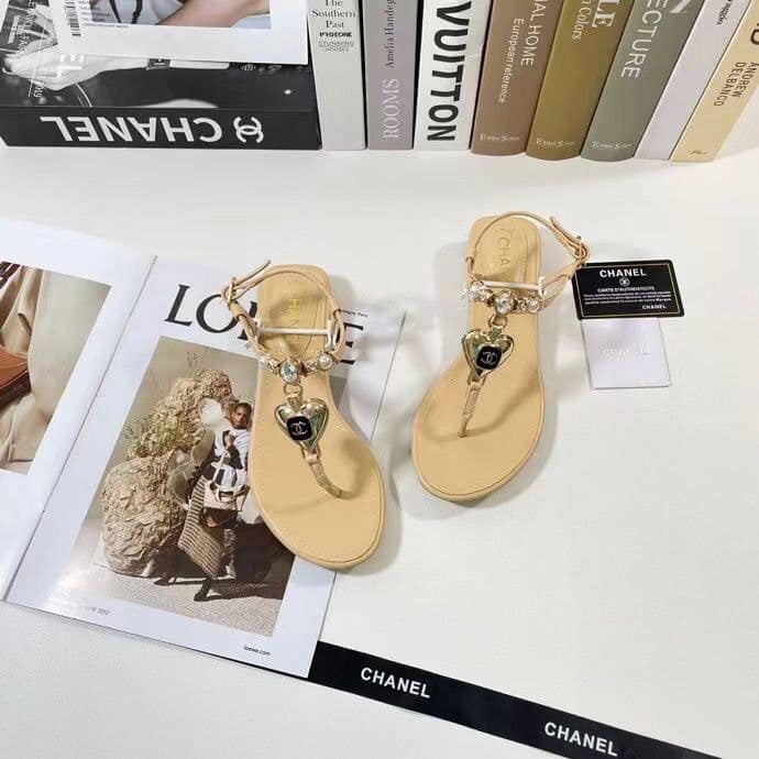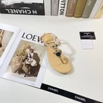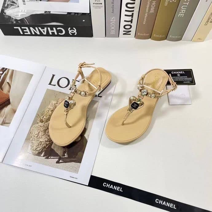 • Chanel Shiny Pearl Crystal Cc Heart Thong Sandals Yellow G39674 X01000 0S083
