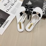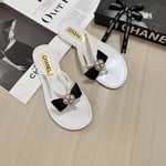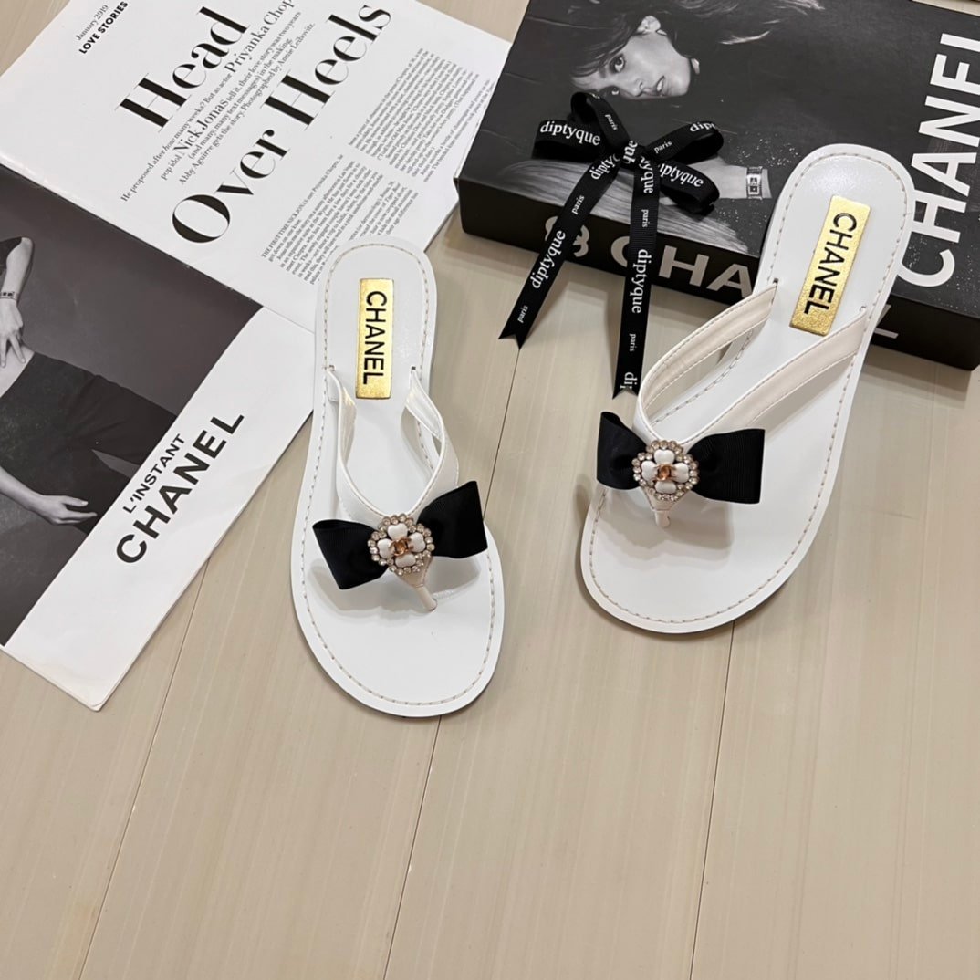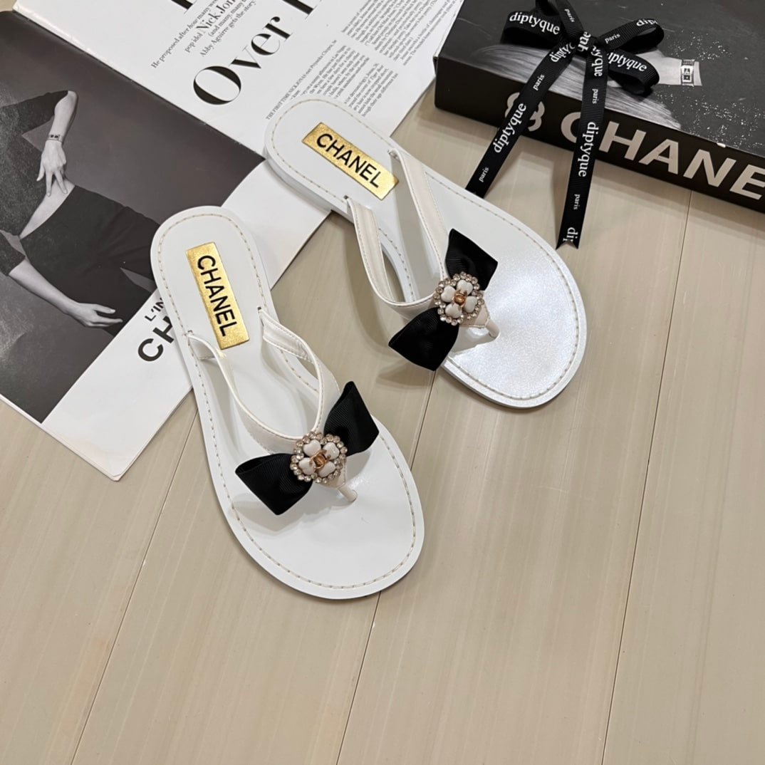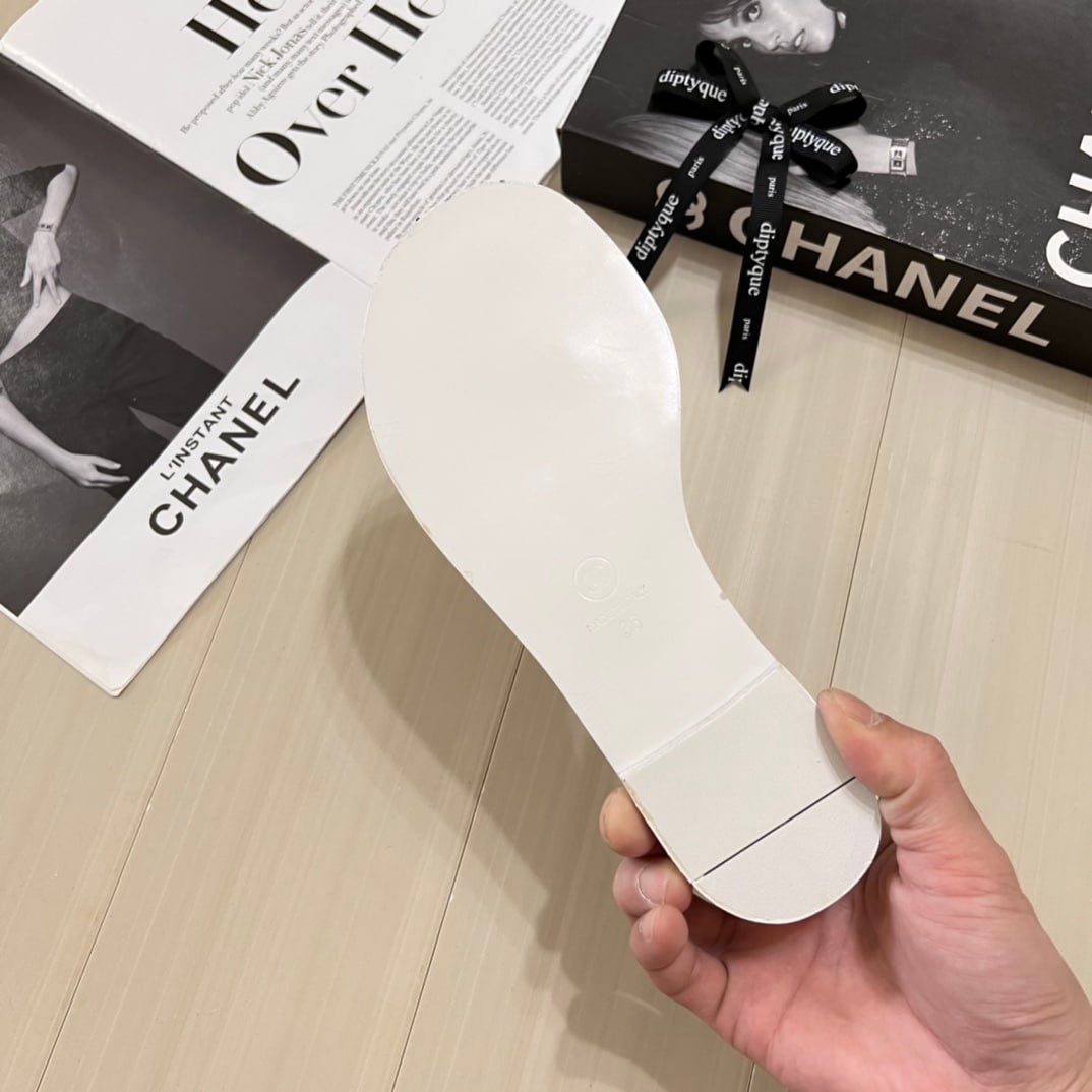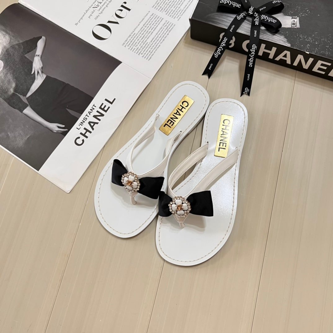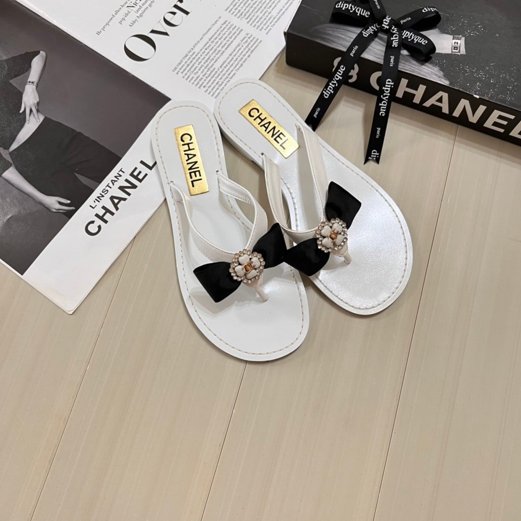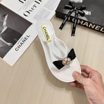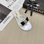 • Chanel Thong Slide White Camellia Cc Logo Bow White