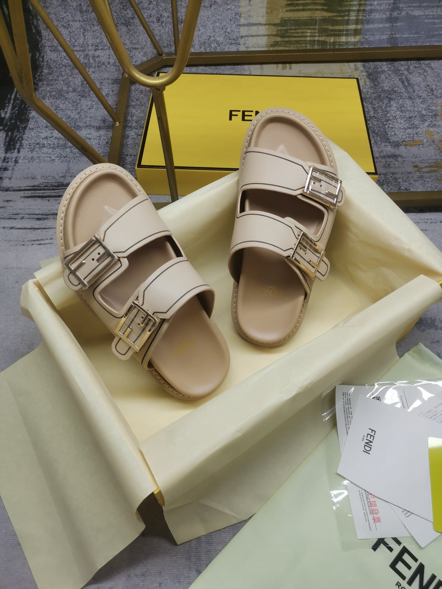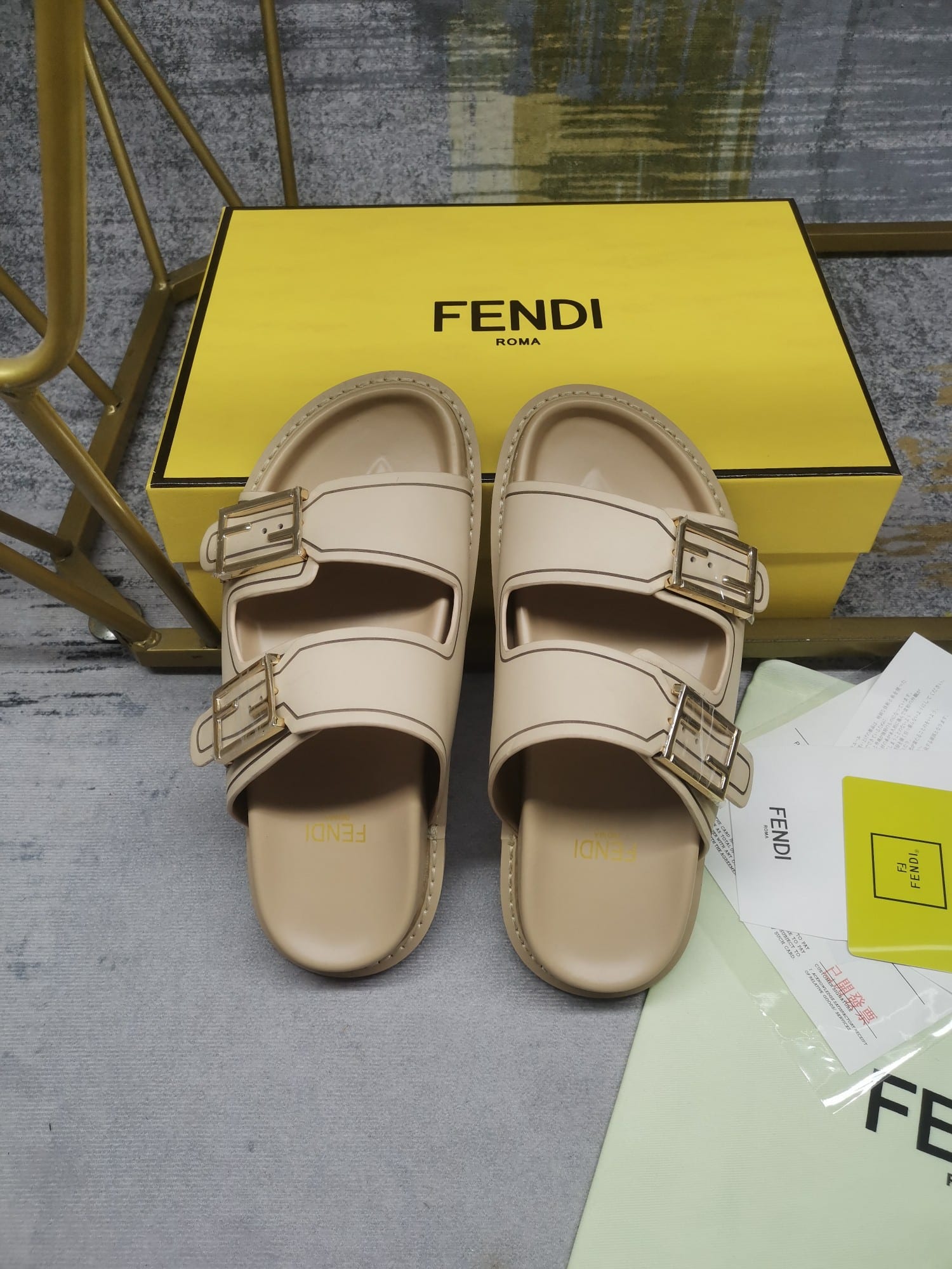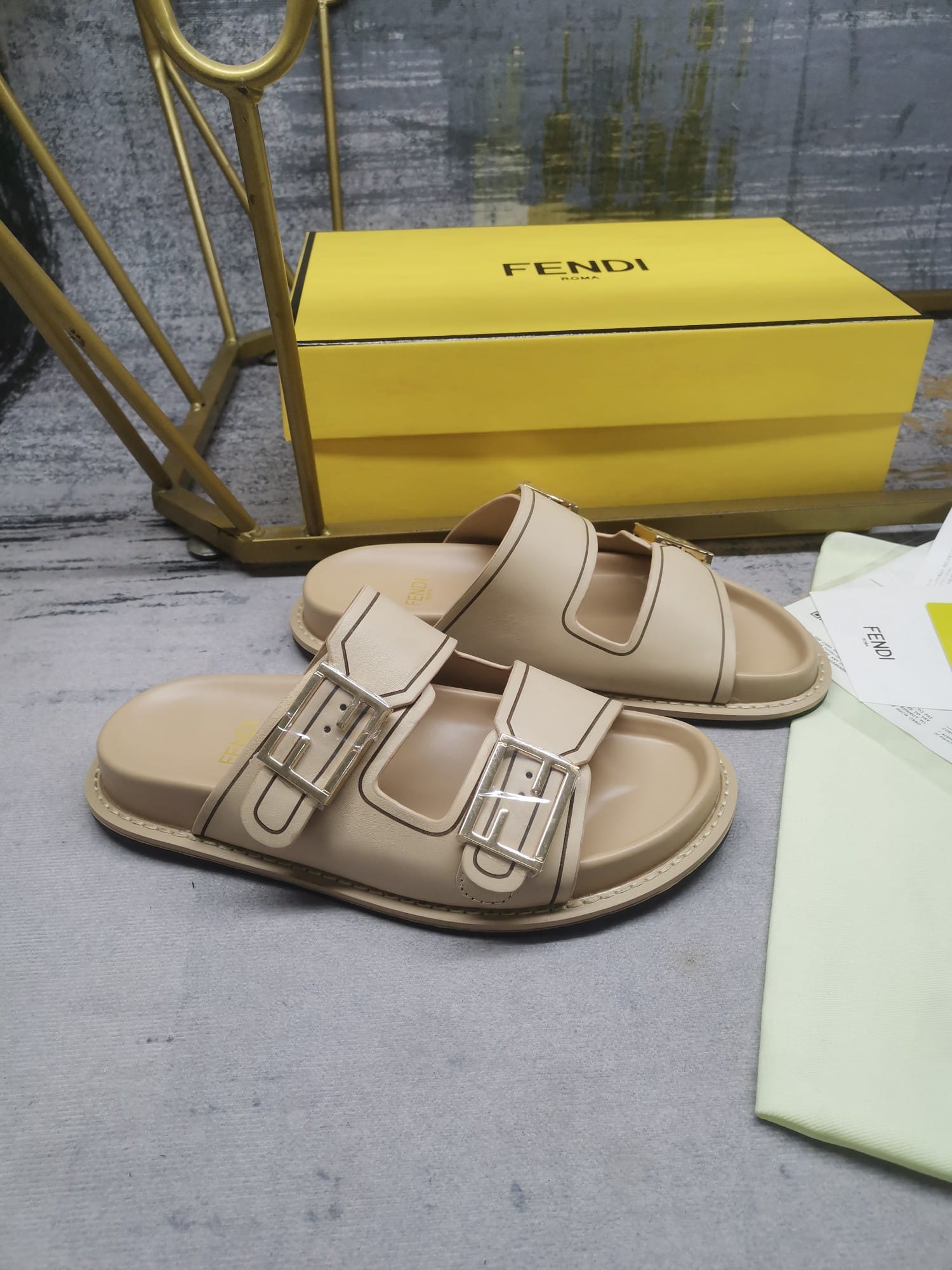 • Fendi Feel Leather Slides Beige 8X8326Na7F1Kcu