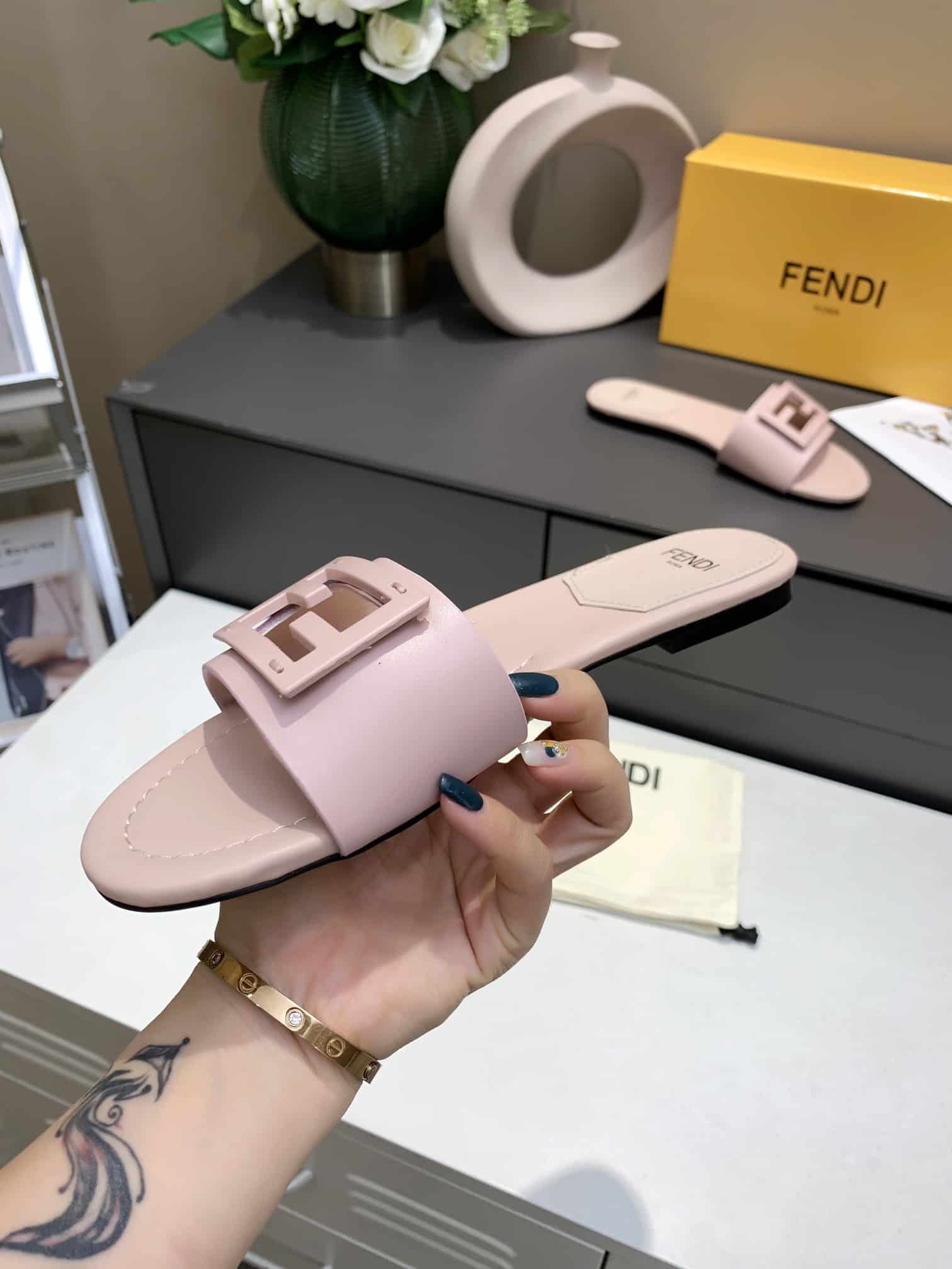• Fendi Signature Leather Sandals Slide Pink 8R8136Ae7Tf1Fgd