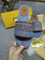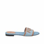 Fendi Signature Light Blue Denim Slides