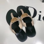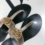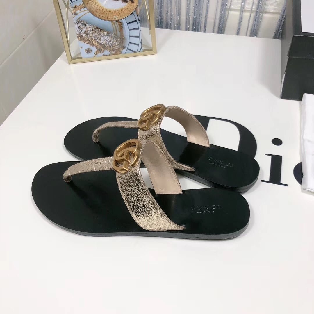 Gucci Double G Thong Leather Metallic Gold ?497444 0B7N0 7100