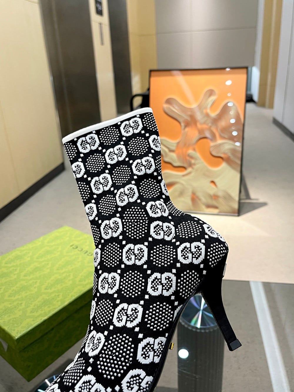 • Gucci Gg 75Mm Knit Ankle Boots Black White Fabric 718378 Faaqp 1008