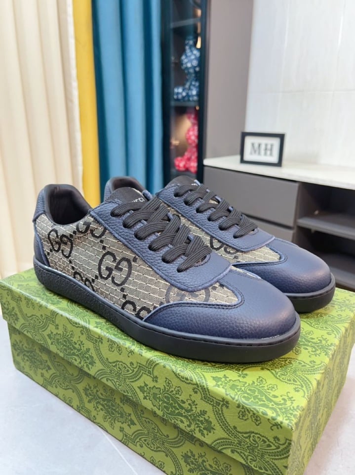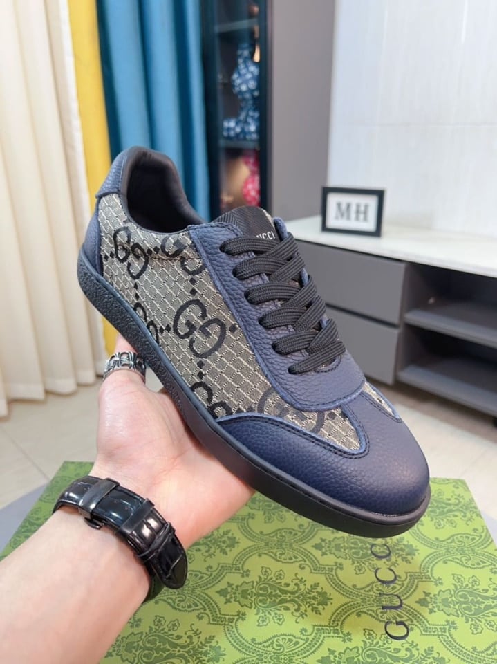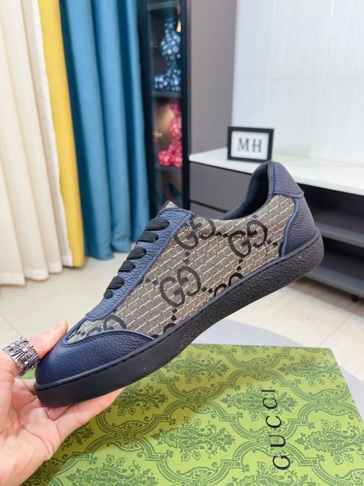 • Gucci Gg Canvas And Leather Low Top Sneakers Blue