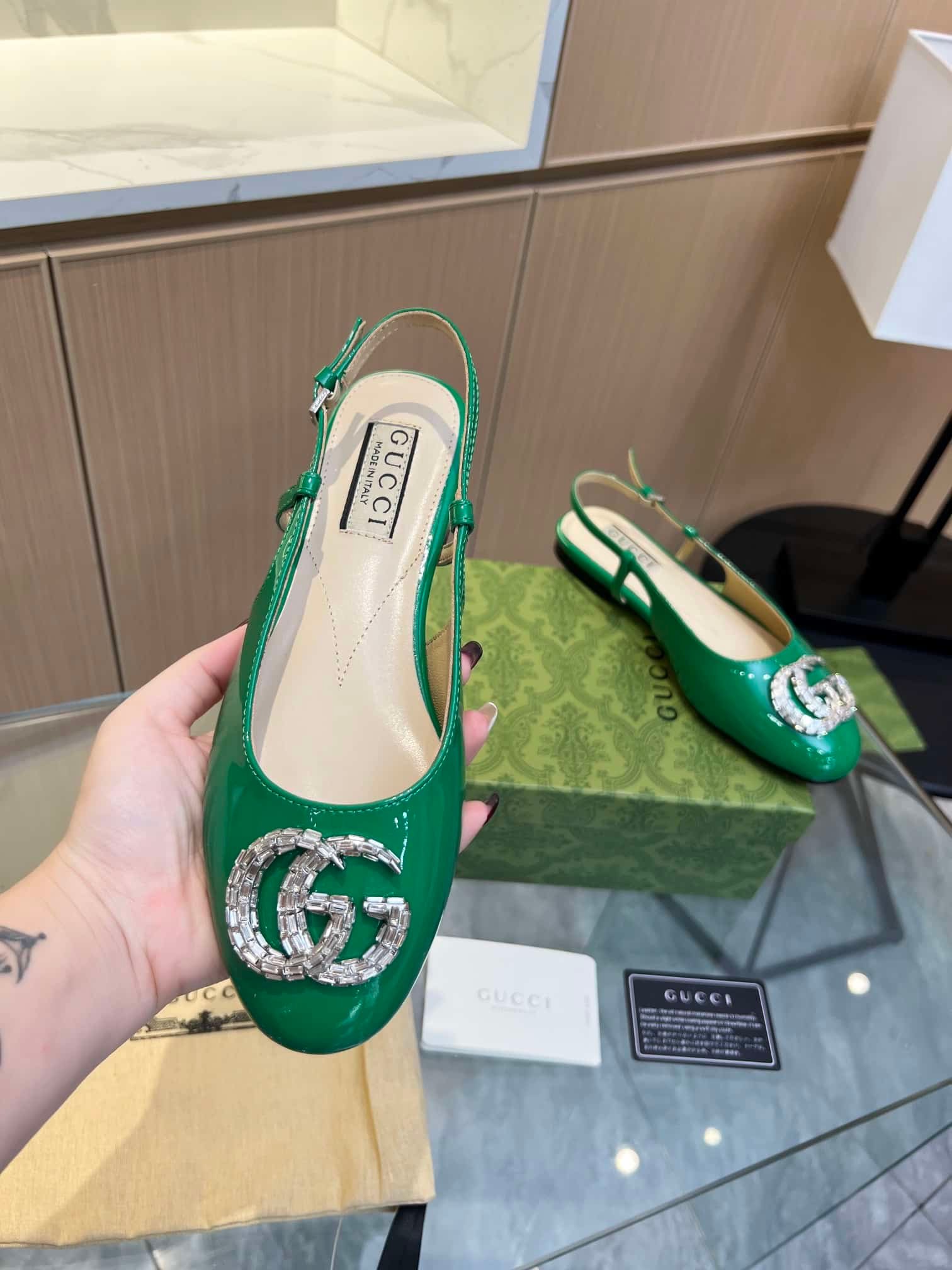 Gucci Gg Crystal Slingback Green