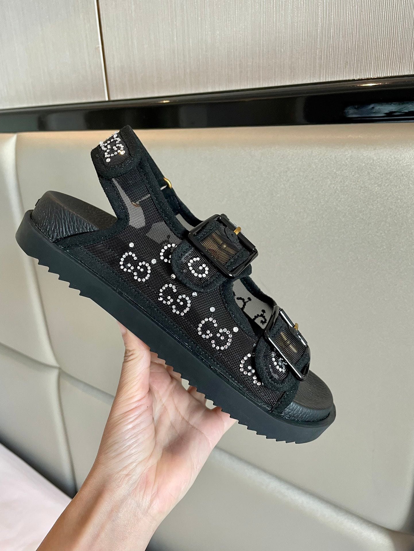 • Gucci Gg Sandal With Crystals Black 701158 F13A0 1000
