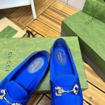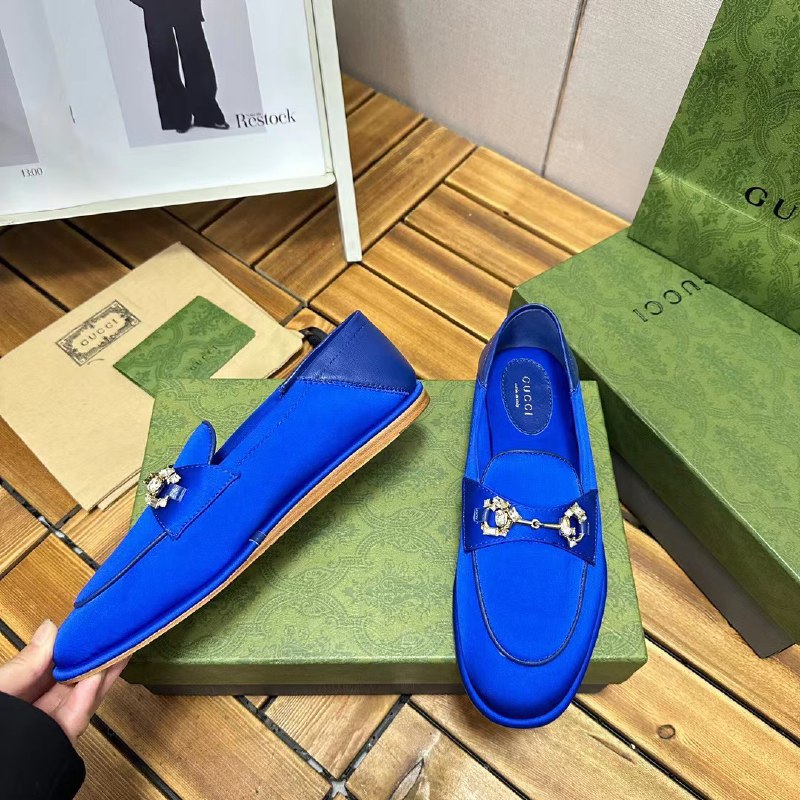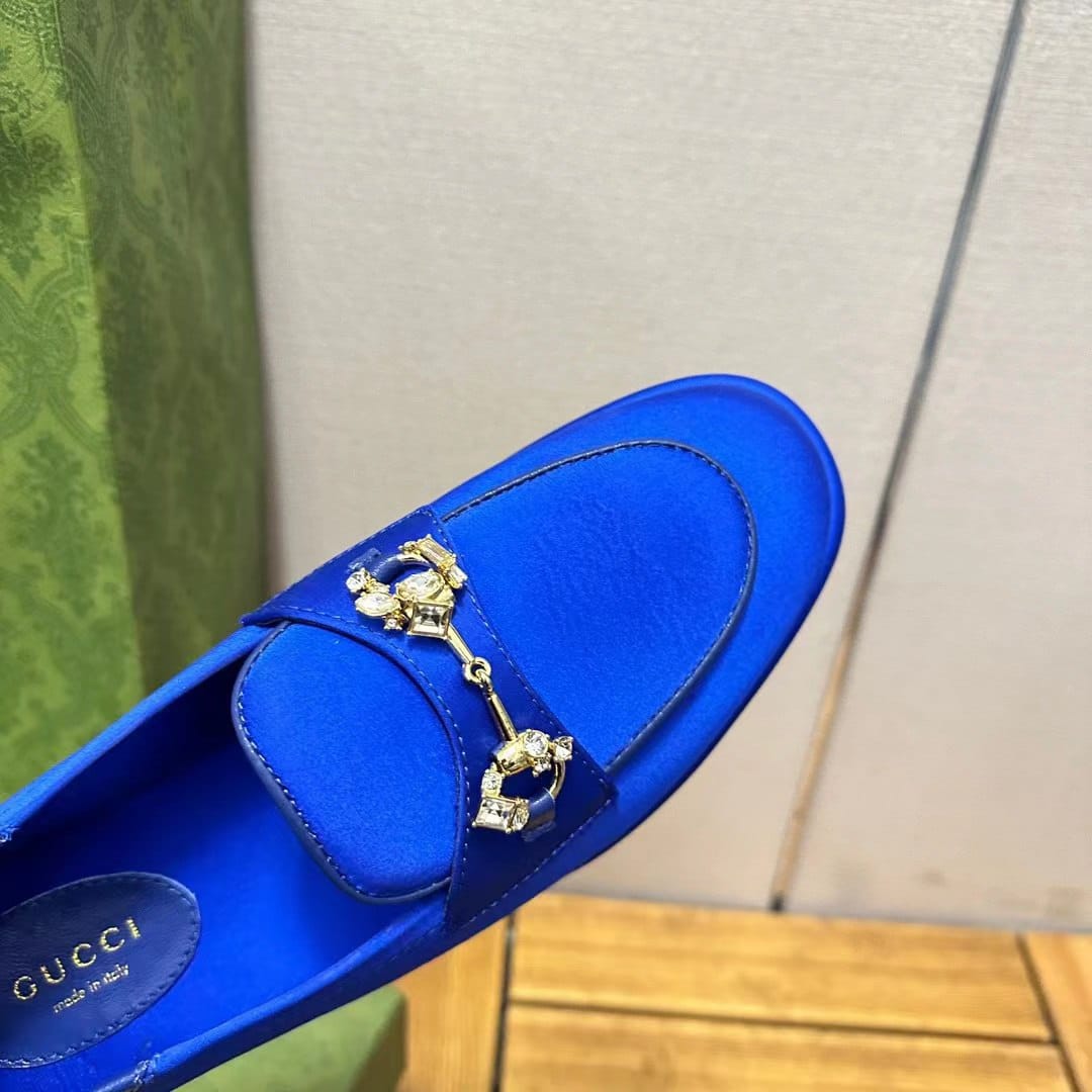 • Gucci Horsebit Loafer With Crystals Blue Satin 759780 Knd90 4380