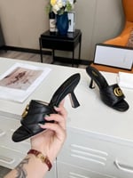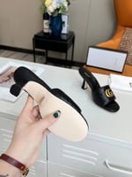 • Gucci Marmont Double G Leather Mules Black 674839 Bko00 1000
