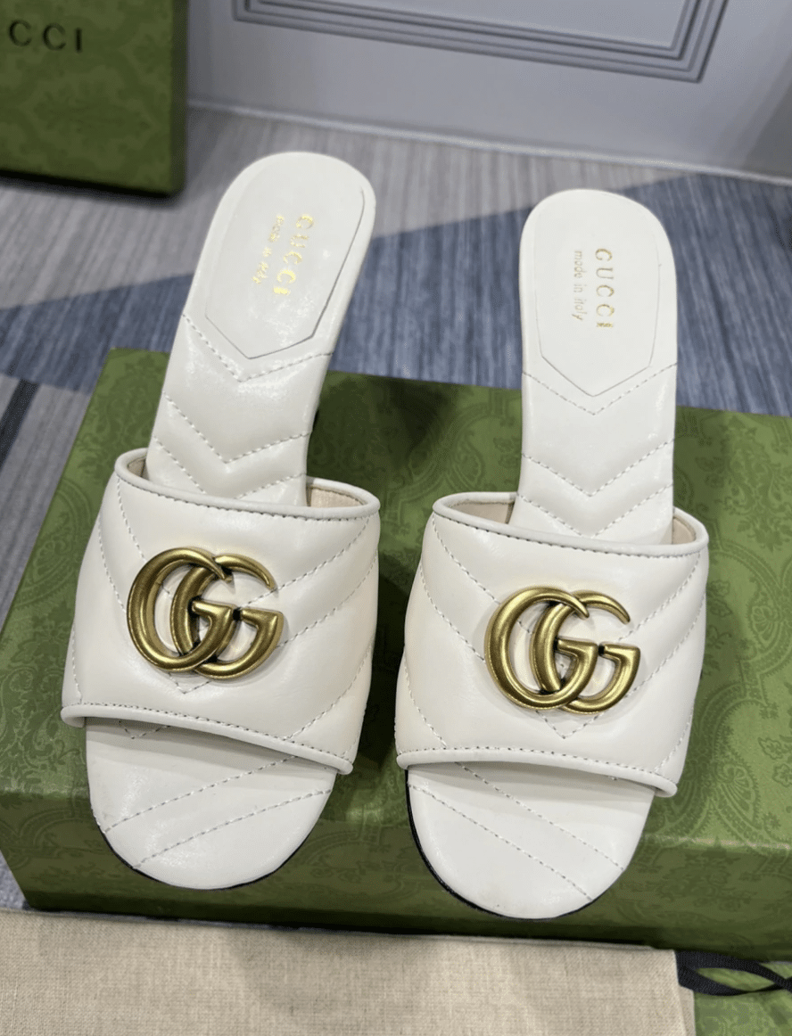 • Gucci Marmont Double G Leather Mules White 674839 Bko00 1000