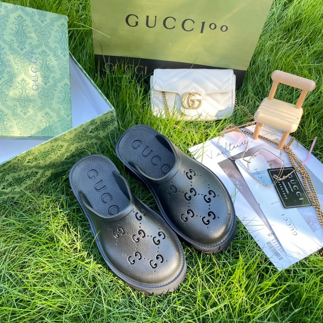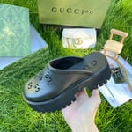 • Gucci Men’S Slip On Sandal Black Gg Rubber 655517 Jfb00 1000