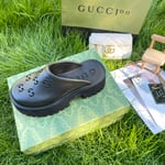 Gucci Men’S Slip On Sandal Black Gg Rubber 655517 Jfb00 1000