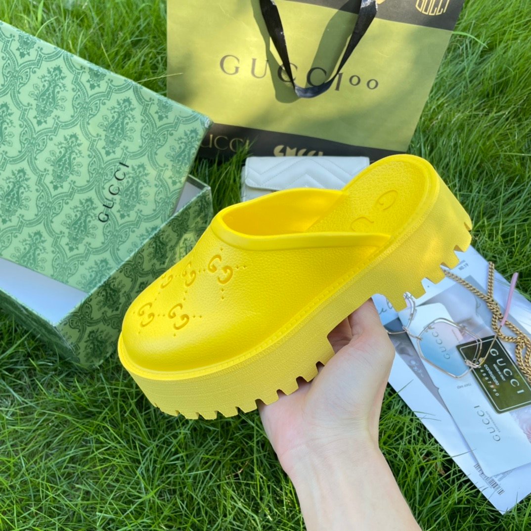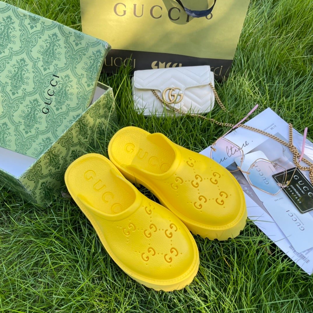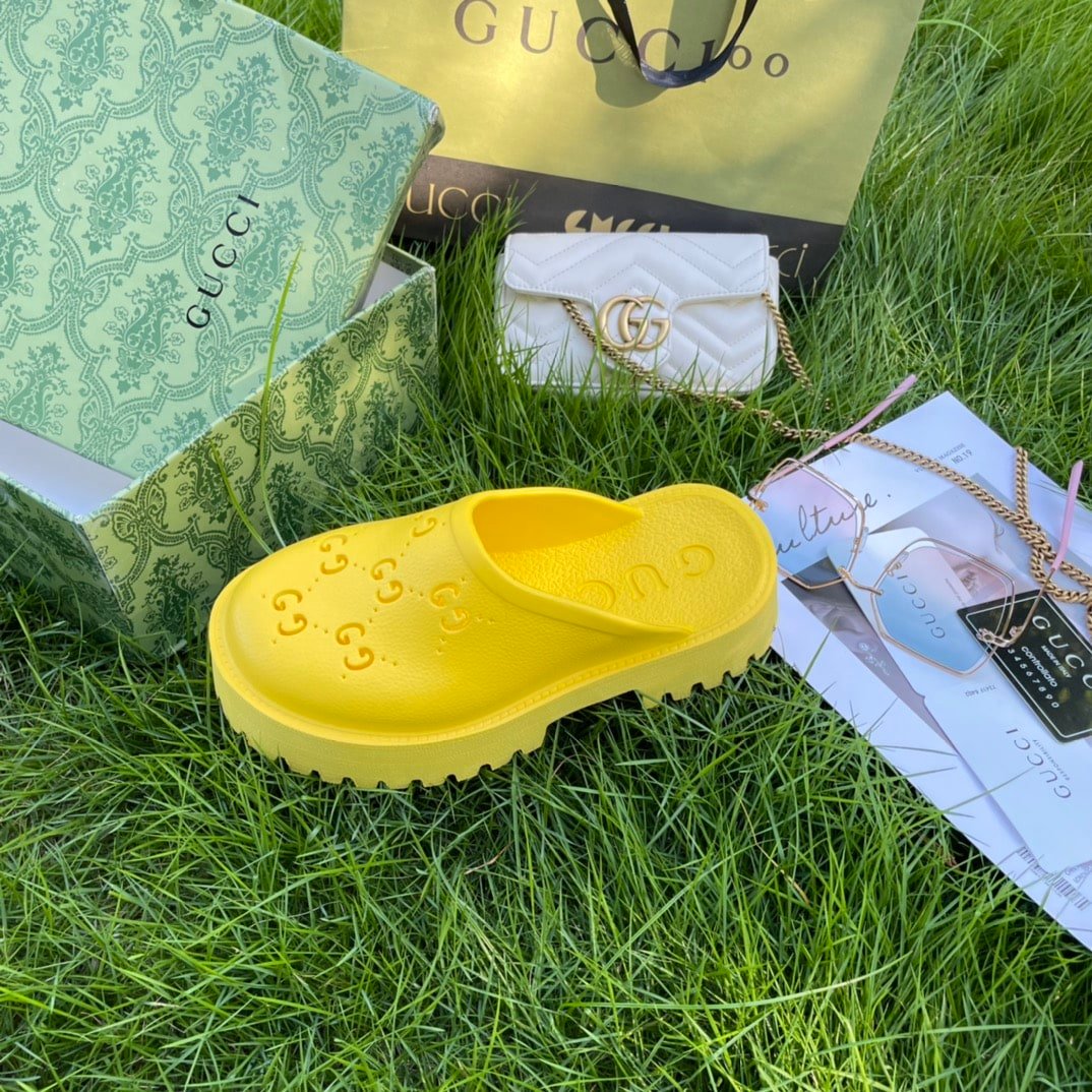 • Gucci Men’S Slip On Sandal Yellow Gg Rubber