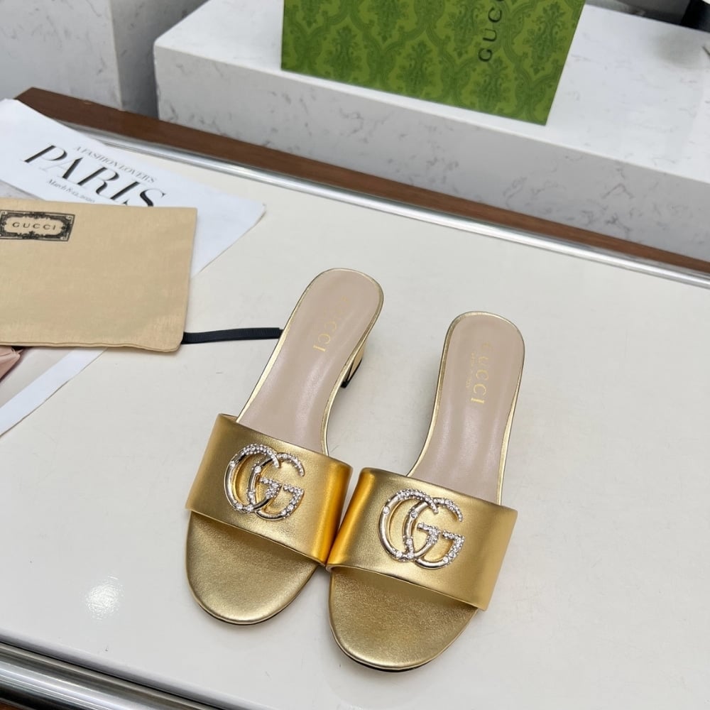 • Gucci Nojum Women’S Slide Sandal Metallic Gold ?817257 B8B00 8024