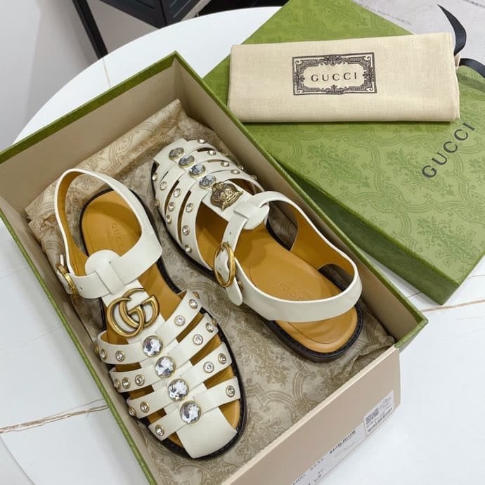 • Gucci Rubber Crystal Embellishments Sandals White